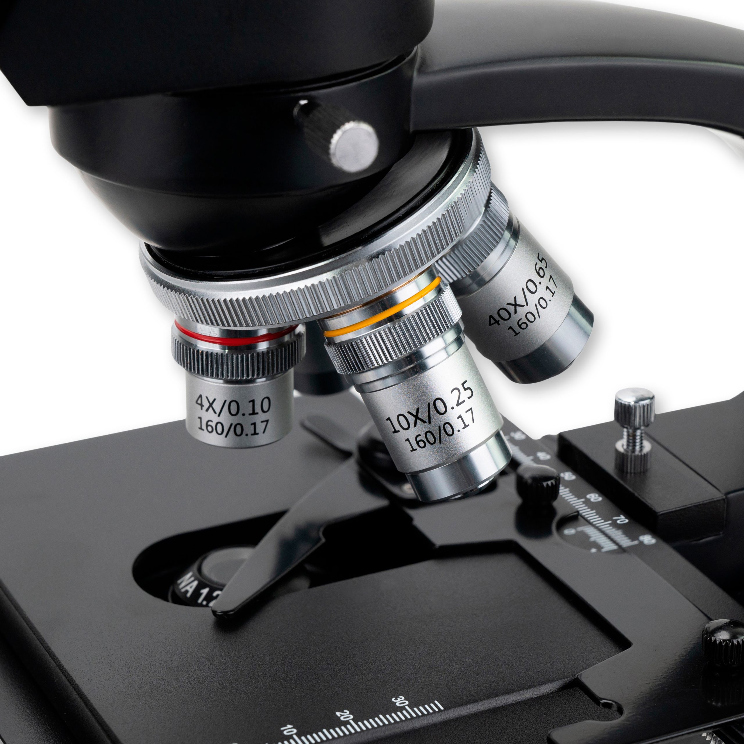 Được trang bị Bàn nâng cơ học hai lớp, kính hiển vi cho phép mẫu vật di chuyển trơn tru và chính xác, khiến nó trở nên lý tưởng cho các chuyên gia. Bộ lấy nét đồng trục với hướng và điều chỉnh chính xác đảm bảo rằng người dùng có thể đạt được tiêu điểm hoàn hảo cho mẫu vật của họ một cách dễ dàng. Và với hai bộ thị kính, bạn có thể dễ dàng chuyển đổi giữa các độ phóng đại, cho phép bạn quan sát mẫu vật chi tiết hơn và điều chỉnh kính hiển vi theo yêu cầu chính xác của bạn, mang lại hiệu suất và độ chính xác vượt trội.