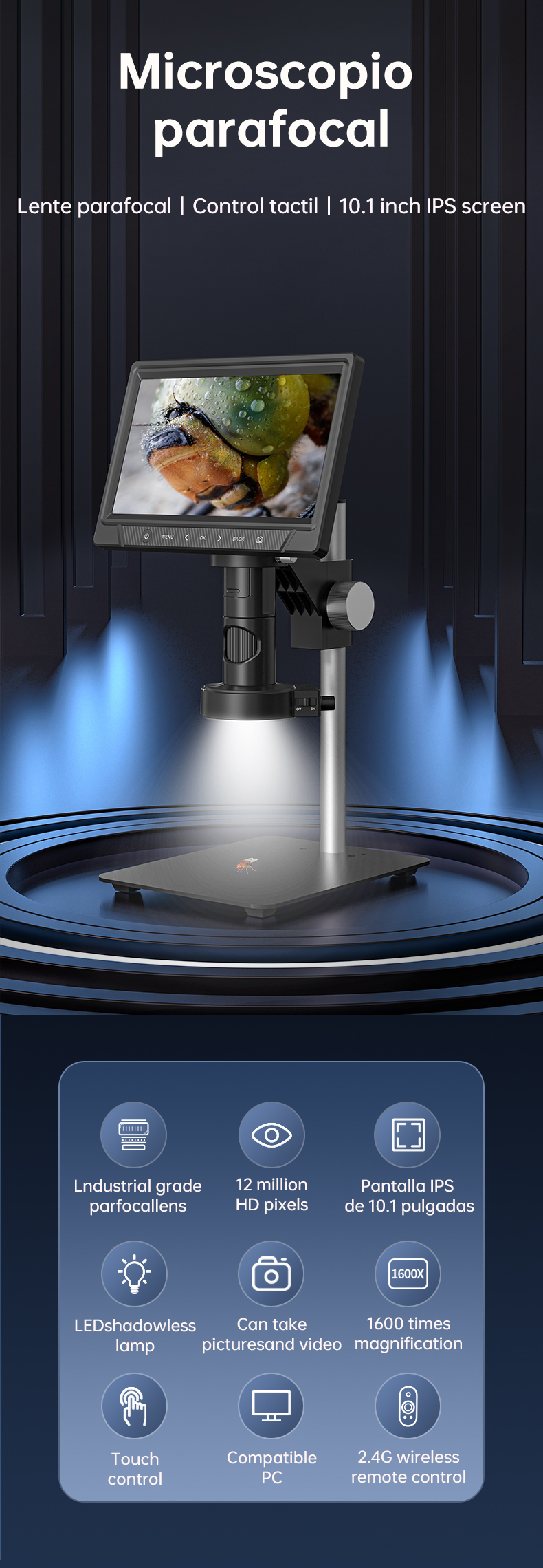 Kính hiển vi kỹ thuật số tích hợp camera Terino HD101-1600X (Phóng đại 1600X, 10.1 Inch IPS HD) - Hàng chính hãng Các tính năng chính: Phóng đại lên đến 1600x ZOOM! - Sử