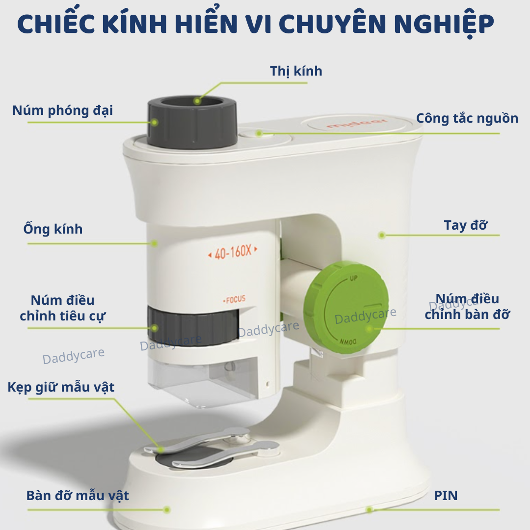 - KÍNH HIỂN VI CHUYÊN NGHIỆP: Đây là công cụ học tập tuyệt vời giúp trẻ phát triển tư duy khoa học, tạo tiền đề vững chắc cho việc khám phá khoa học trong tương lai.