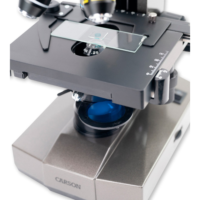 Kính hiển vi có đèn LED 100x-1000x trung cấp chất lượng cao với Bàn soi cơ học của Carson. Kính hiển vi này hoàn hảo cho học sinh trình độ trung cấp đang tìm kiếm một thiết bị thuận tiện và tiện dụng mang lại hình ảnh sắc nét và rõ ràng.