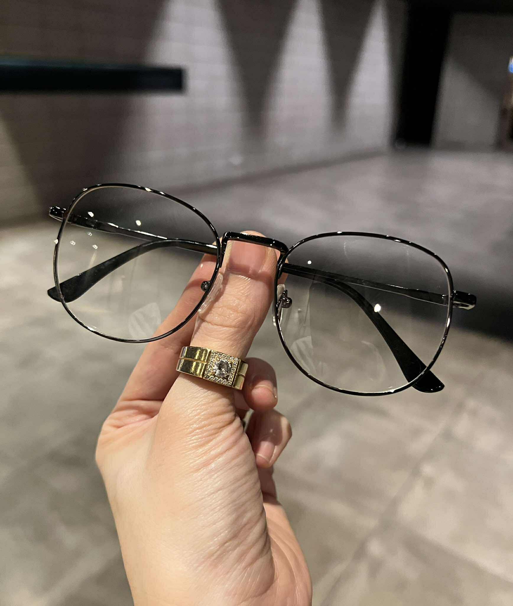 ✨Kính mắt unisex thời trang dáng tròn nhỏ gọng kim loại màu xám