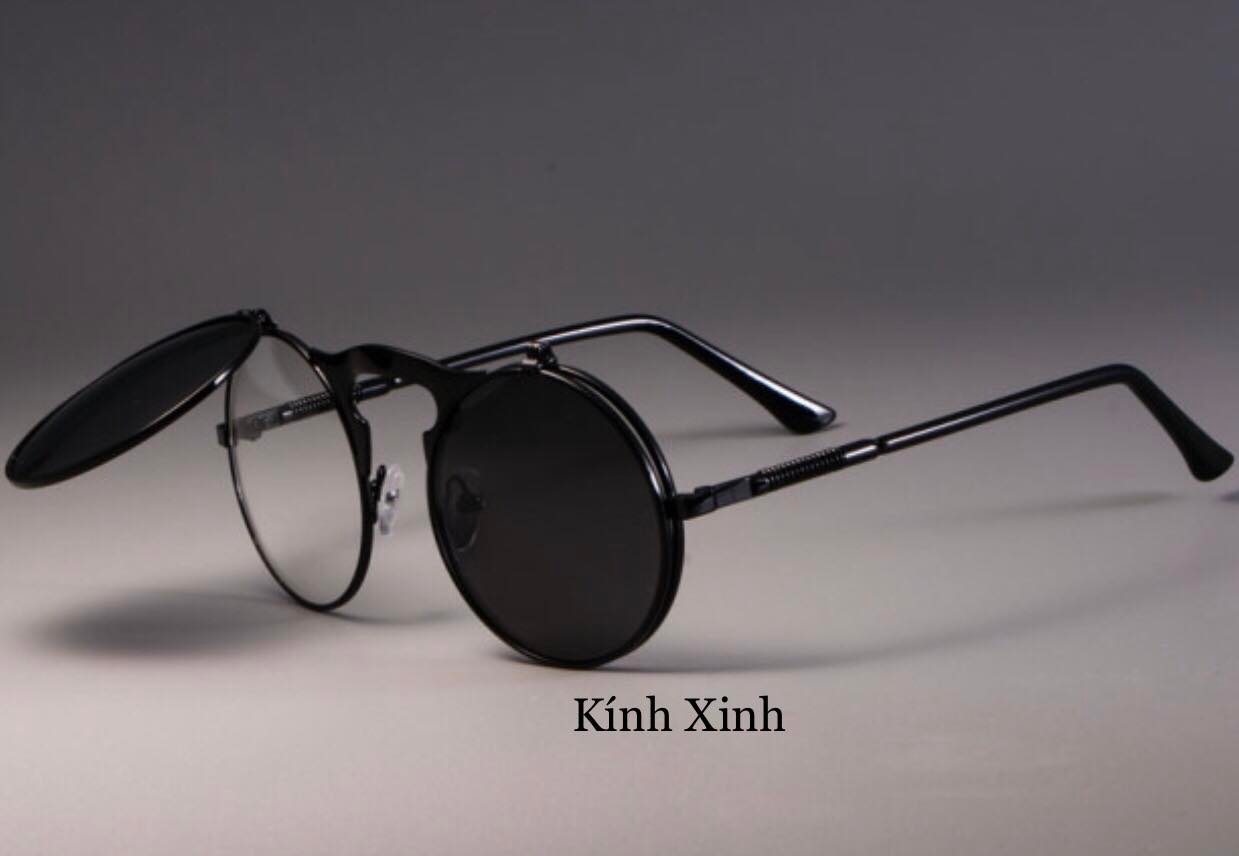 Mua tại Tiktok- Kính râm Mắt Tròn Nhỏ 2 Lớp Lật Nắp Gọng Lò Xo Cao Cấp