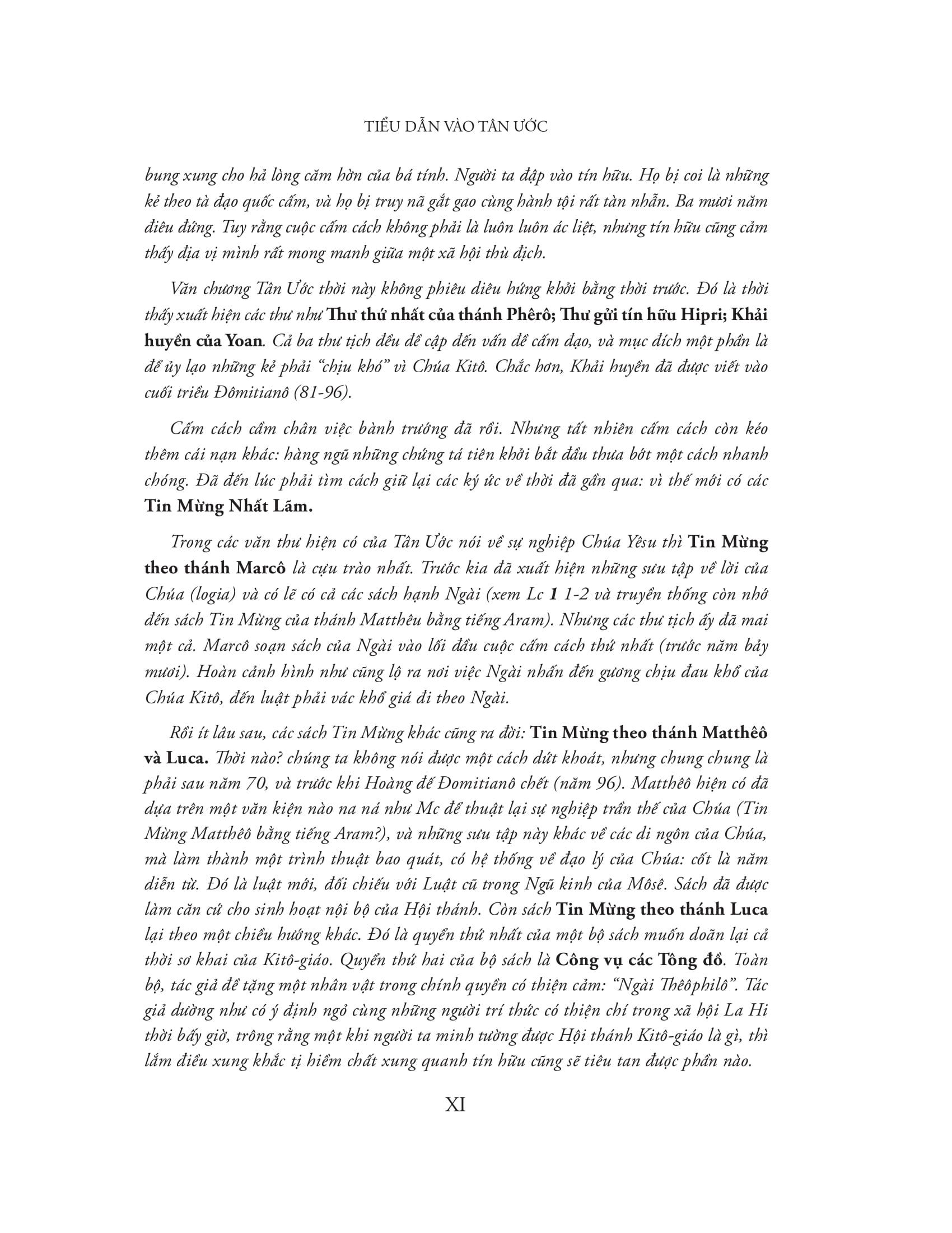 Những sách thuật lại đời Chúa Yêsu: các lời Ngài nói, các việc Ngài làm. Đó là các sách mà lâu nay quen gọi là Tin Mừng (Phúc âm): Tin Mừng theo thánh Matthêô (Mt), Tin Mừng theo thánh Marcô (Mc), Tin Mừng theo thánh Luca (Lc), Tin Mừng theo thánh Yoan (Yn);