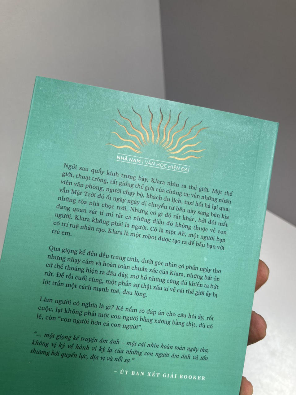 Ngồi sau quầy kính trưng bày, Klara nhìn ra thế giới. Một thế giới, thoạt trông, rất giống thế giới của chúng ta: vẫn những nhân viên văn phòng, người chạy bộ, khách du lịch, taxi hối hả lại qua; vẫn Mặt Trời đỏ ối ngày ngày di chuyển từ bên này sang bên kia những tòa nhà chọc trời. Nhưng có gì đó rất khác, bởi đôi mắt đang quan sát tỉ mỉ tất cả những điều đó không thuộc về con người. Klara không phải là người. Cô là một AF, một người bạn có trí tuệ nhân tạo. Klara là một robot được tạo ra để bầu bạn với trẻ em.