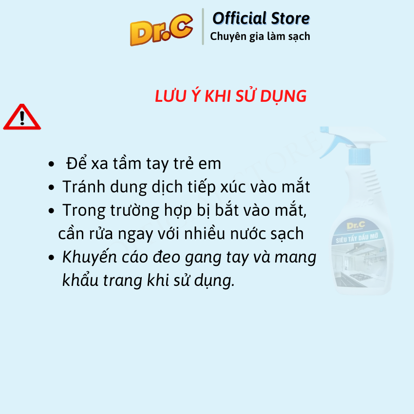 - Dr.C siêu tẩy dầu mỡ không chứa các thành phần độc hại và an toàn với người sử dụng và môi trường.
