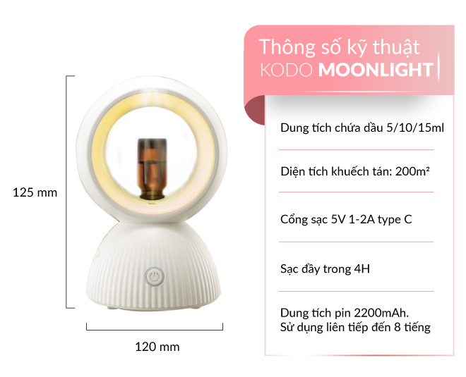 Sản phẩm máy khuếch tán, xông tinh dầu Kodo Moonlight gồm các bộ phận sau: