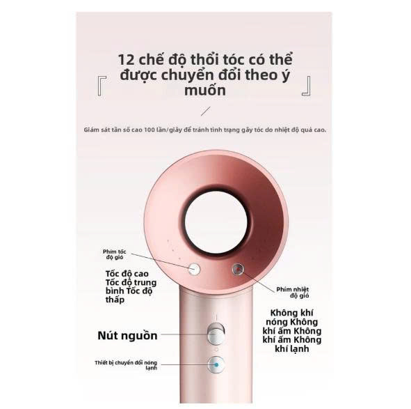 • Nhỏ gọn, dễ mang theo khi đi du lịch, công tác hoặc làm quà tặng người thân yêu. BỘ SẢN PHẨM GỒM CÓ   01 Máy sấy tóc không lá cao cấp 01 Đầu sấy tập trung luồng gió 01 Hộp đựng da sang trọng Phiếu bảo hành & hướng dẫn sử dụng PHÙ HỢP CHO MỌI LOẠI TÓC Dù tóc bạn là tóc dày, tóc nhuộm, tóc uốn hay tóc yếu dễ gãy – máy đều có chế độ gió & nhiệt phù hợp, giúp tóc khô nhanh nhưng vẫn giữ được độ ẩm tự nhiên và độ bóng khỏe. MÓN QUÀ TẶNG HOÀN HẢO Với thiết kế tinh tế và hộp đựng sang trọng, đây là món quà ý nghĩa dành cho mẹ, bạn gái, vợ hoặc chính bạn – món quà thể hiện sự quan tâm và yêu thương. ĐÁNH GIÁ TỪ KHÁCH HÀNG “Máy sấy nhanh, nhẹ, êm, sấy xong tóc mềm mượt chứ không bị khô xơ như máy thường.” “Hộp đựng sang trọng, mua về làm quà rất ưng.” “Thiết kế siêu xinh, dùng thích, cảm giác như đang dùng hàng cao cấp vậy!” THÔNG SỐ KỸ THUẬT