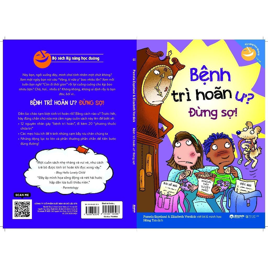 Sách: Kỹ Năng Học Đường - Bệnh Trì Hoãn Ư? Đừng Sợ! Tác giả: Pamela Espeland & Elizabeth Verdick Nhà phát hành: Alpha Books NXB: Lao Động Năm xuất bản: 2023 Loại bìa: Bìa mềm Khổ (cm): 13 x19 Số trang: 128 Trẻ em ngày nay nổi tiếng là hay trì hoãn mọi việc, các em rất dễ để bài tập về nhà và công việc nhà “xếp đống” ở đấy rồi mải chơi trò chơi điện tử, đi chơi với bạn bè, xem tivi hoặc lướt web. Với minh họa giống như thước phim hoạt hình đầy màu sắc và lối dẫn dắt nhẹ nhàng, thân thiện với trẻ em, Bệnh trì hoãn ư? Đừng sợ! dạy trẻ cách tạo động lực cho bản thân, duy trì động lực và hoàn thành công việc. Nội dung chính của cuốn sách bao gồm: