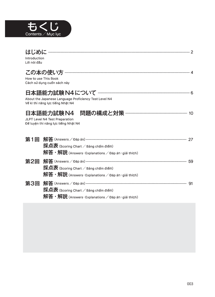 Kỳ Thi Năng Lực Nhật Ngữ N4 - Bộ Đề Luyện Thi 3 Bộ Đề - Bao gồm 3 đề luyện thi Kỳ thi năng lực Nhật ngữ cấp độ N4. Giải 3 bộ đề