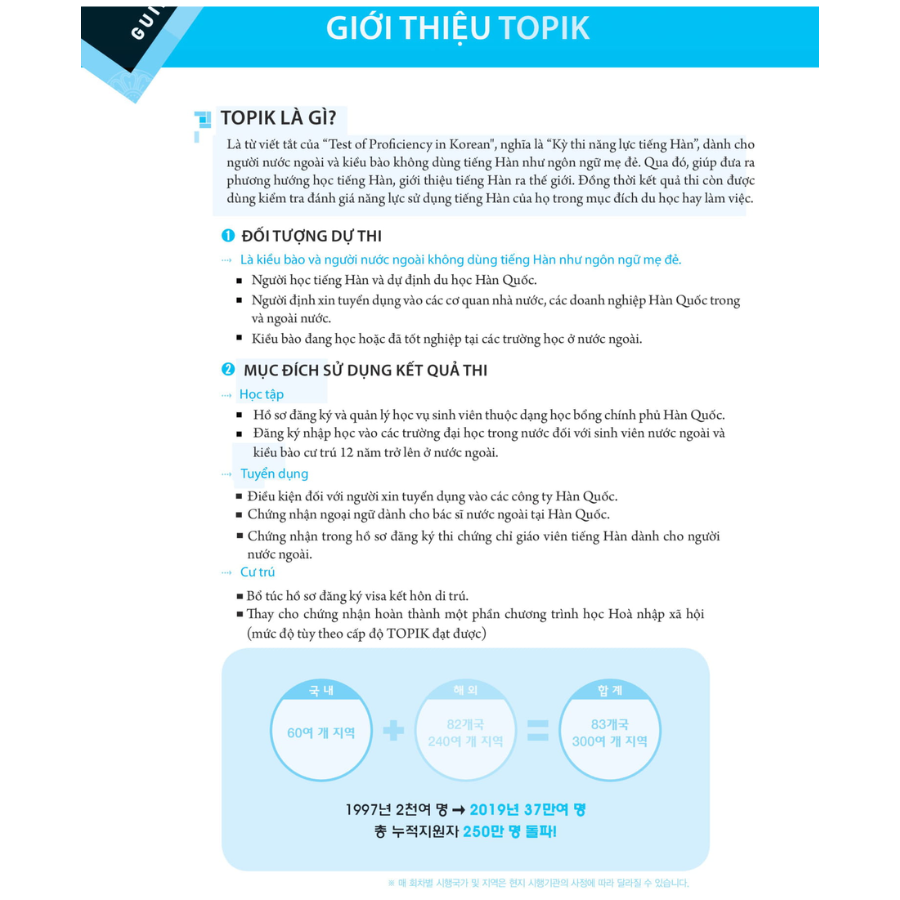 Luyện Thi TOPIK 2 - Trình Độ Trung Cấp Và Nâng Cao Được biên soạn theo cấu trúc của đề thi TOPIK mới, giáo trình này được đưa vào chương trình giảng dạy từ tháng