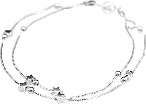 Lắc chân bạc 925 dây đôi gắn sao và bi xinh xắn nhẹ nhàng Dế Bạc - LC4095 - 2 Lắc chân bạc 925 dây đôi gắn sao và bi xinh xắn nhẹ nhàng. Lắc