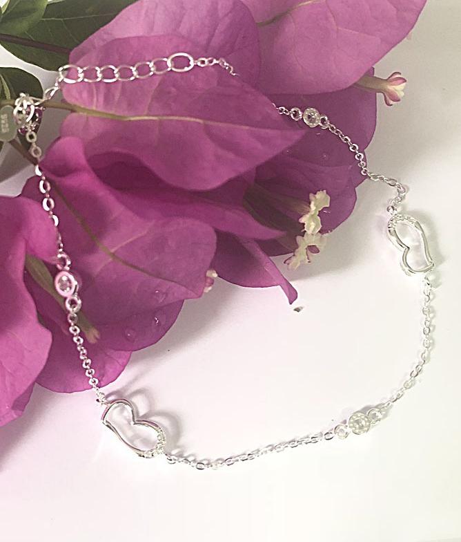 Lắc chân được chế tác từ bạc cao cấp S925  Lắc chân với thiết kế đơn giản bao gồm hai trái tim đính đá thể hiện tình cảm nồng nàn của người tặng và sự