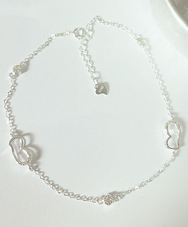 Lắc Chân Nữ Bạc 925 Dây Kép Trái Tim Bạc Hiểu Minh LC240