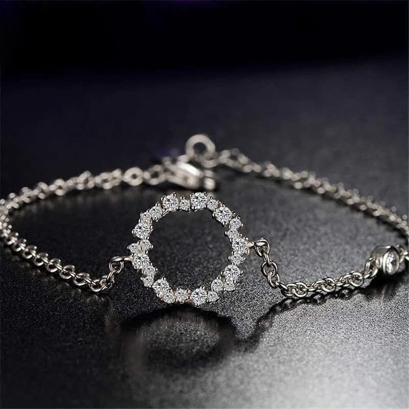 Lắc tay được chế tác từ bạc cao cấp S925  Với thiết kế dành riêng cho các cô nàng yêu sự ngọt ngào nhưng không kém phần cá tính. Với vòng tròn đính đá xung