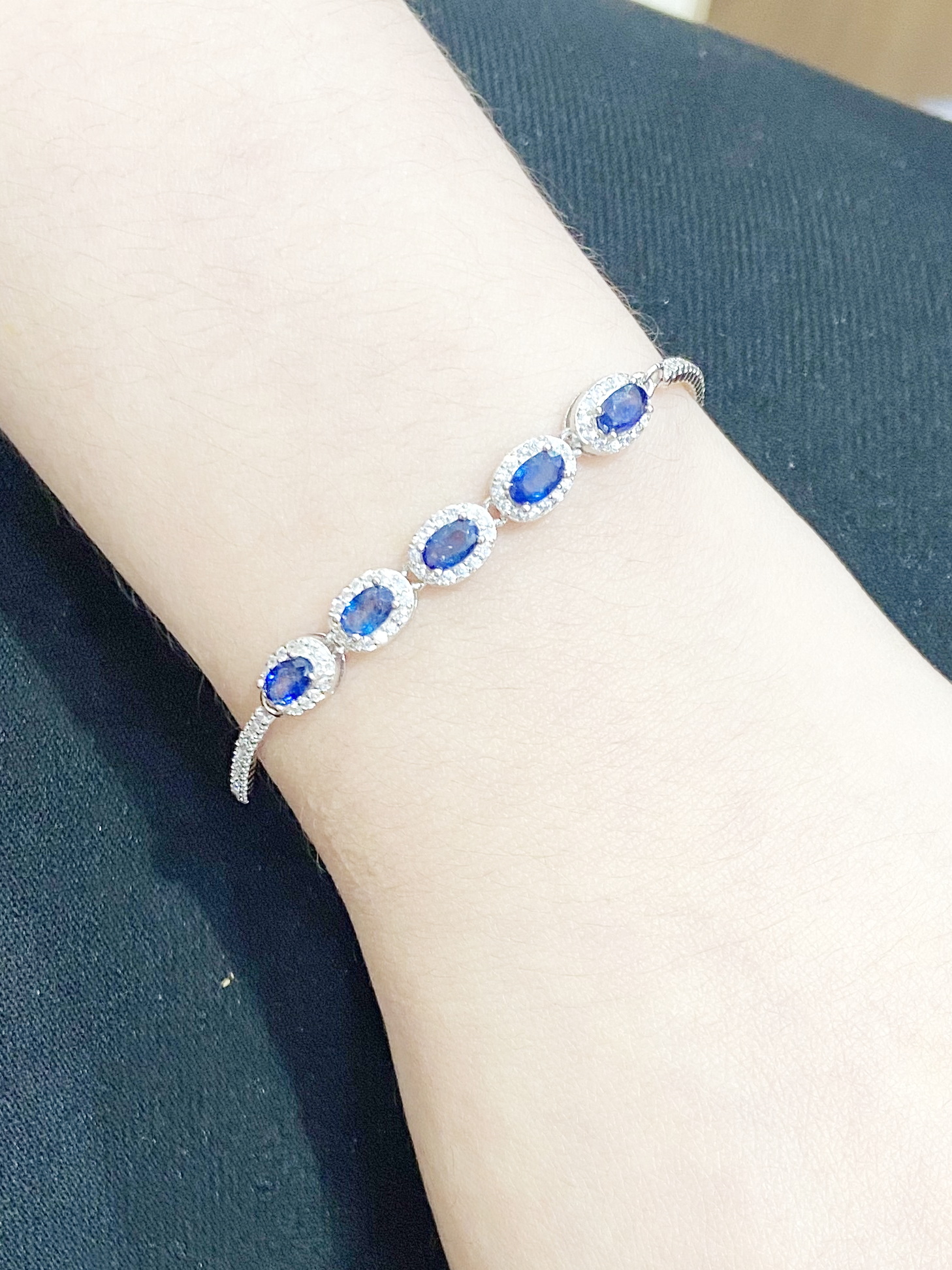 Lắc Tay Đính Đá Sapphire thiên nhiên (Oval) - MOON JewelryLắc Tay Đính Đá Sapphire thiên nhiên (Oval) - MOON Jewelry