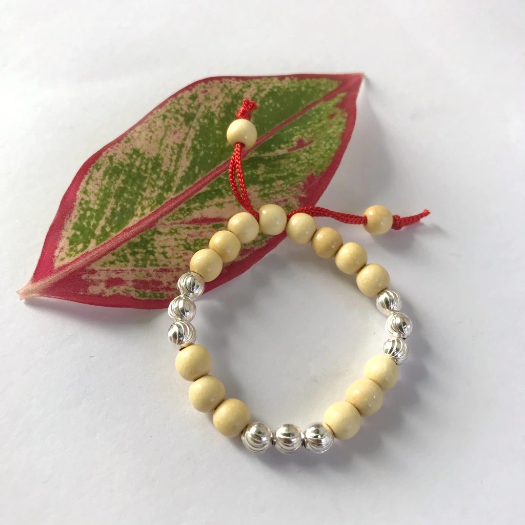 Lắc Tay Lắc Chân Trẻ Em Vòng Dâu Tằm Bạc Hiểu Minh LTE051 làm từ dâu tằm Việt Nam có tác dụng trừ tà ma, vong âm theo và âm khí lạnh.