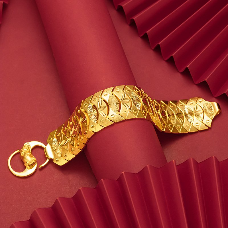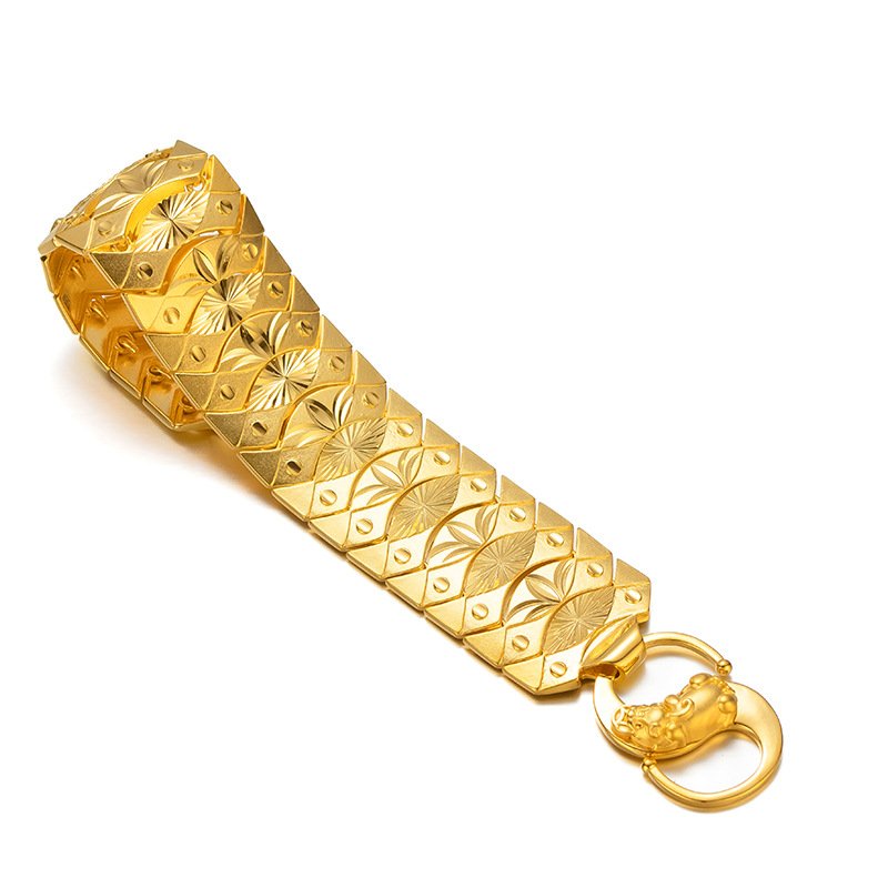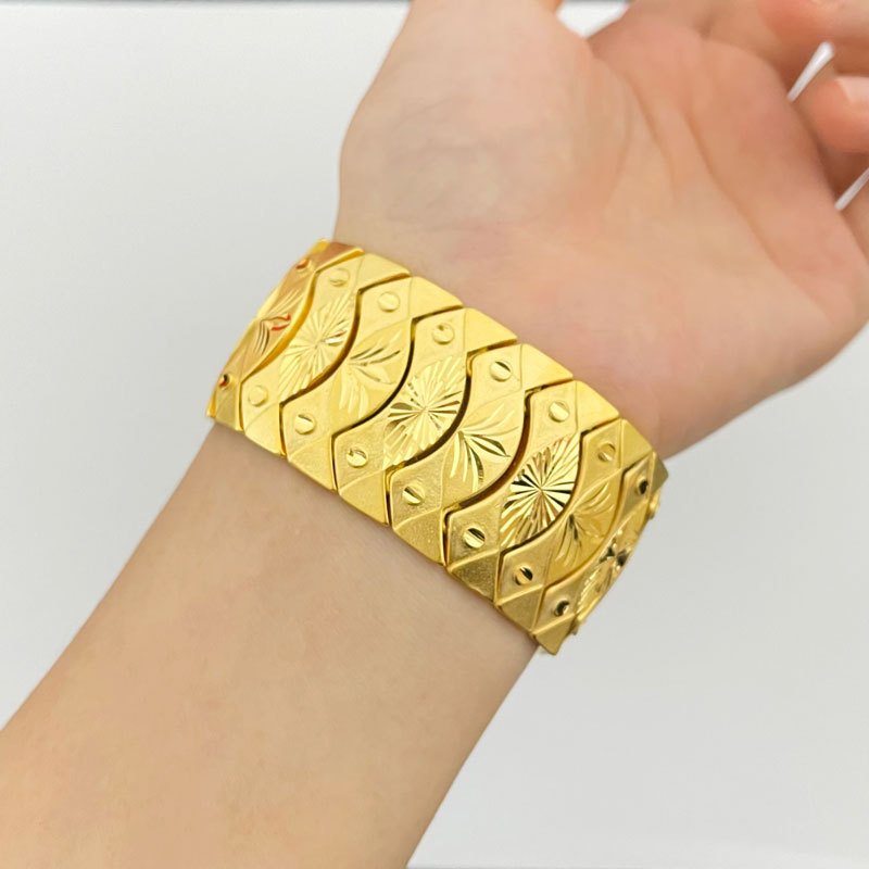 Chất liệu: hợp kim đồng mạ 24k tạo độ sáng bóng. Sở hữu công nghệ mạ tĩnh điện mang lại độ bền cao cho sản phẩm Chiều rộng mặt dây 3.0 cm kết hợp độ