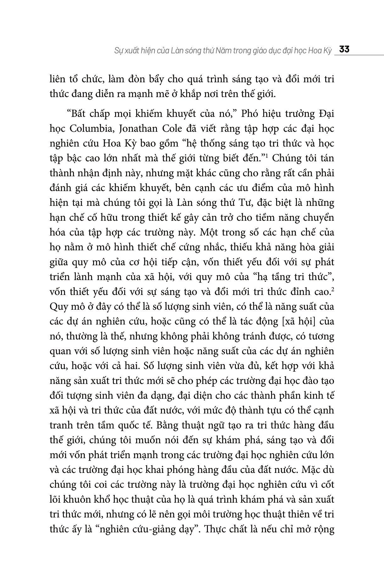 Ý tưởng về Làn sóng thứ Năm thực sự rất tuyệt vời. Với các dữ liệu phong phú và sự thật thú vị về các trường đại học, được đúc kết từ nhiều lĩnh vực khác nhau từ thiết kế, kinh tế, chính sách công, lý thuyết tổ chức, nghiên cứu khoa học và công nghệ, xã hội học, tâm lý học và thậm chí nhận thức luận, các tác giả đã trình bày một chủ đề quan trọng, đầy hứa hẹn và tôi tin rằng với bất kỳ ai quan tâm đến tương lai của giáo dục đại học đều không nên bỏ qua Làn sóng thứ Năm: Giáo Dục Khai Phóng Kiểu Mỹ.