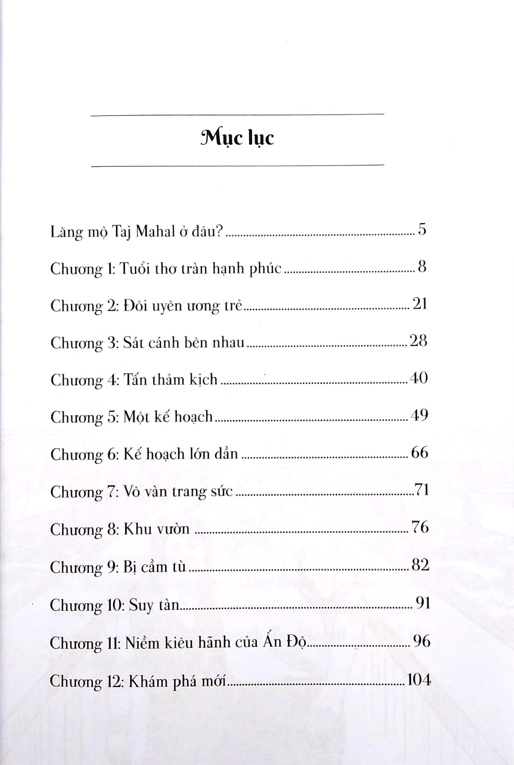 Mua tại TiktokLăng Mộ Taj Mahal Ở Đâu? “Một kiệt tác được ngưỡng vọng trong kho tàng di sản thế giới.” – UNESCO Cùng khám phá bộ sách Tri thức phổ thông – Những địa danh làm nên lịch sử để hiểu hơn về những công trình, kiến trúc trường tồn theo thời gian. Đằng sau những biểu tượng của thế giới là cả một lịch sử huy hoàng, hãy cùng quay trở lại 2500 trước công nguyên để làm sáng tỏ sự ra đời của Đại Kim Tự Tháp hay bôn ba đến đất nước Ấn Độ để cùng chiêm ngưỡng sự lung linh và tráng lệ của ngôi đền TAJ MAHAL. Đặc biệt mỗi cuốn sách sẽ đi kèm bản đồ được in màu vô cùng đặc biệt dẫn lối bạn tới các di tích lịch sử.