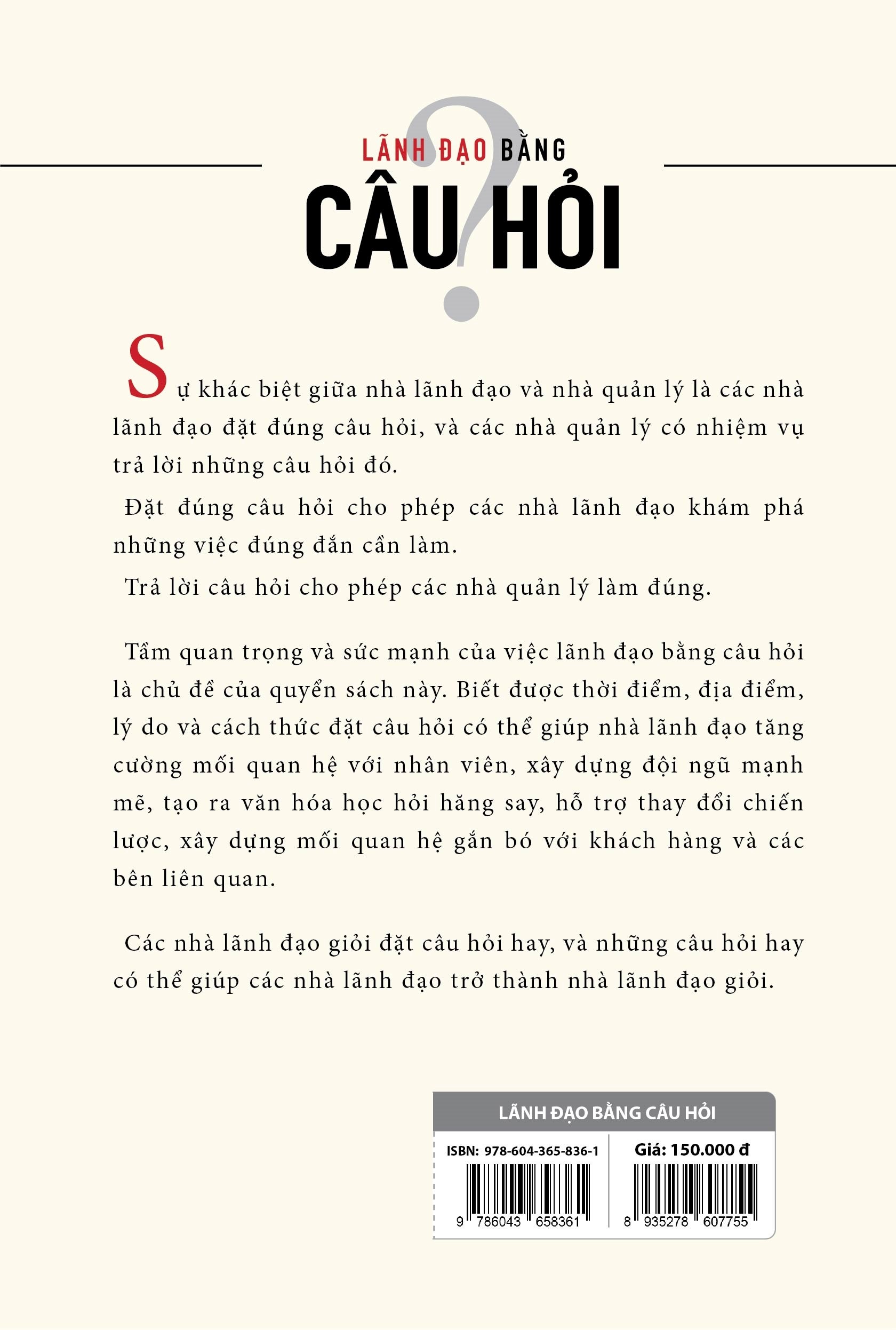 Tầm quan trọng và sức mạnh của việc lãnh đạo bằng câu hỏi là chủ đề của quyển sách này. Biết được thời điểm, địa điểm, lý do và cách thức đặt câu hỏi có thể giúp nhà lãnh đạo tăng cường mối quan hệ với nhân viên, xây dựng đội ngũ mạnh mẽ, tạo ra văn hóa học hỏi hăng say, hỗ trợ thay đổi chiến lược, xây dựng mối quan hệ gắn bó với khách hàng và các bên liên quan.