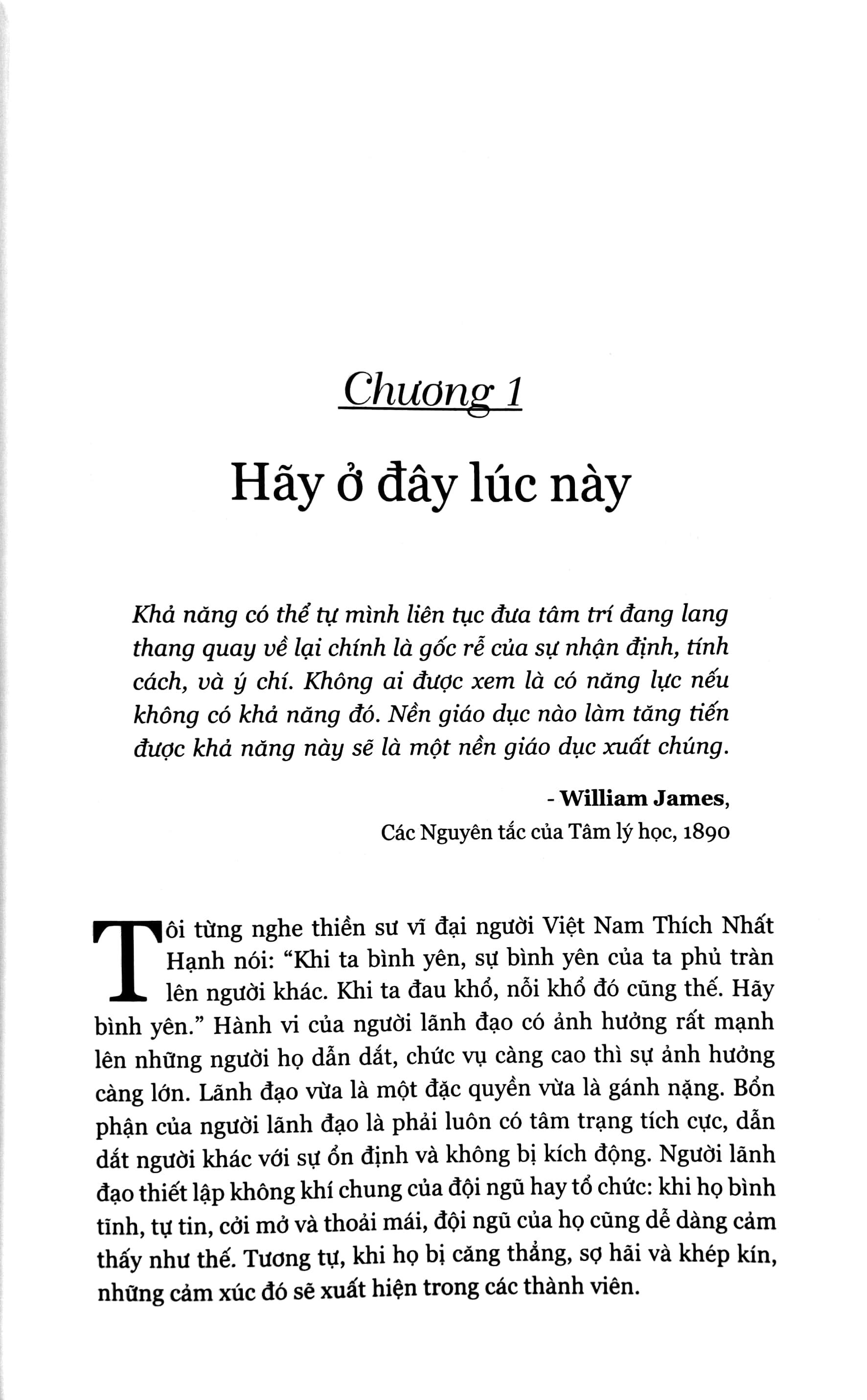 Mức độ lãnh đạo hiệu quả của bạn phụ thuộc vào khả năng tự nhận thức. Bạn càng tự nhận thức được, bạn càng có nhiều sức mạnh, trí khôn và lòng tốt để truyền được nhiều cảm hứng cho người bạn dẫn dắt. Mindfulness là chìa khoá mở ra sự tự nhận thức, cho phép bạn đạt được toàn bộ tiềm năng của m.ình và dẫn dắt đội ngũ và tổ chức đến tầm cao mới.