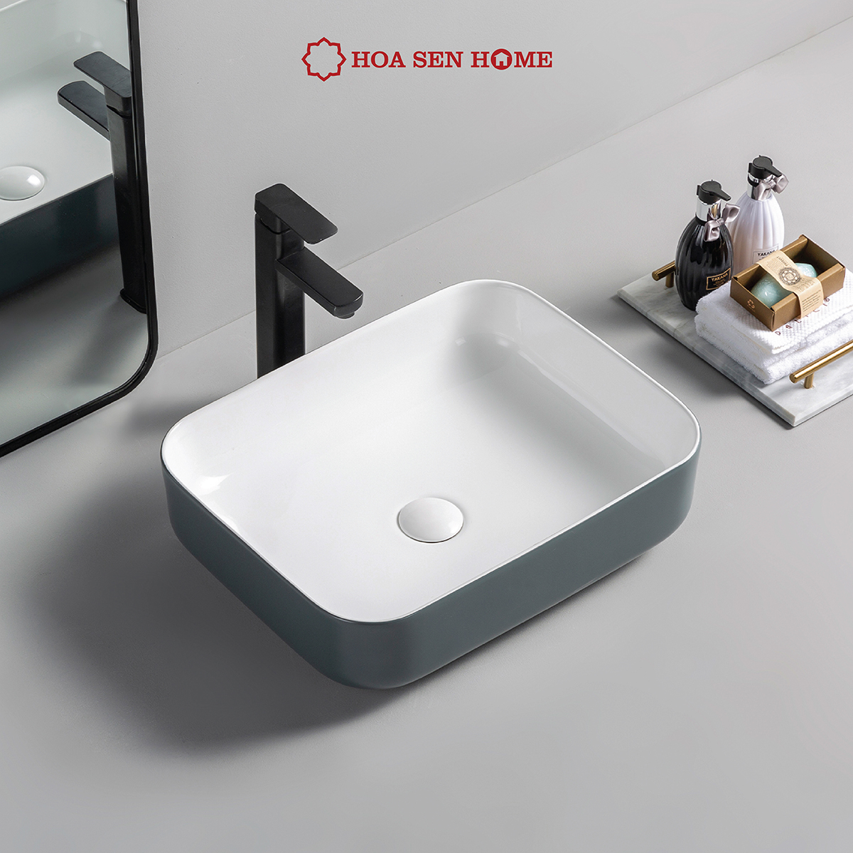 Sản phẩm: Chậu rửa lavabo đặt bàn RG-80008B Thiết kế chậu đặt bàn hình vuông bo góc sang trọng Công nghệ FFC hiện đại, vật liệu từ cao lanh chất lượng cao Nhiệt độ nung: