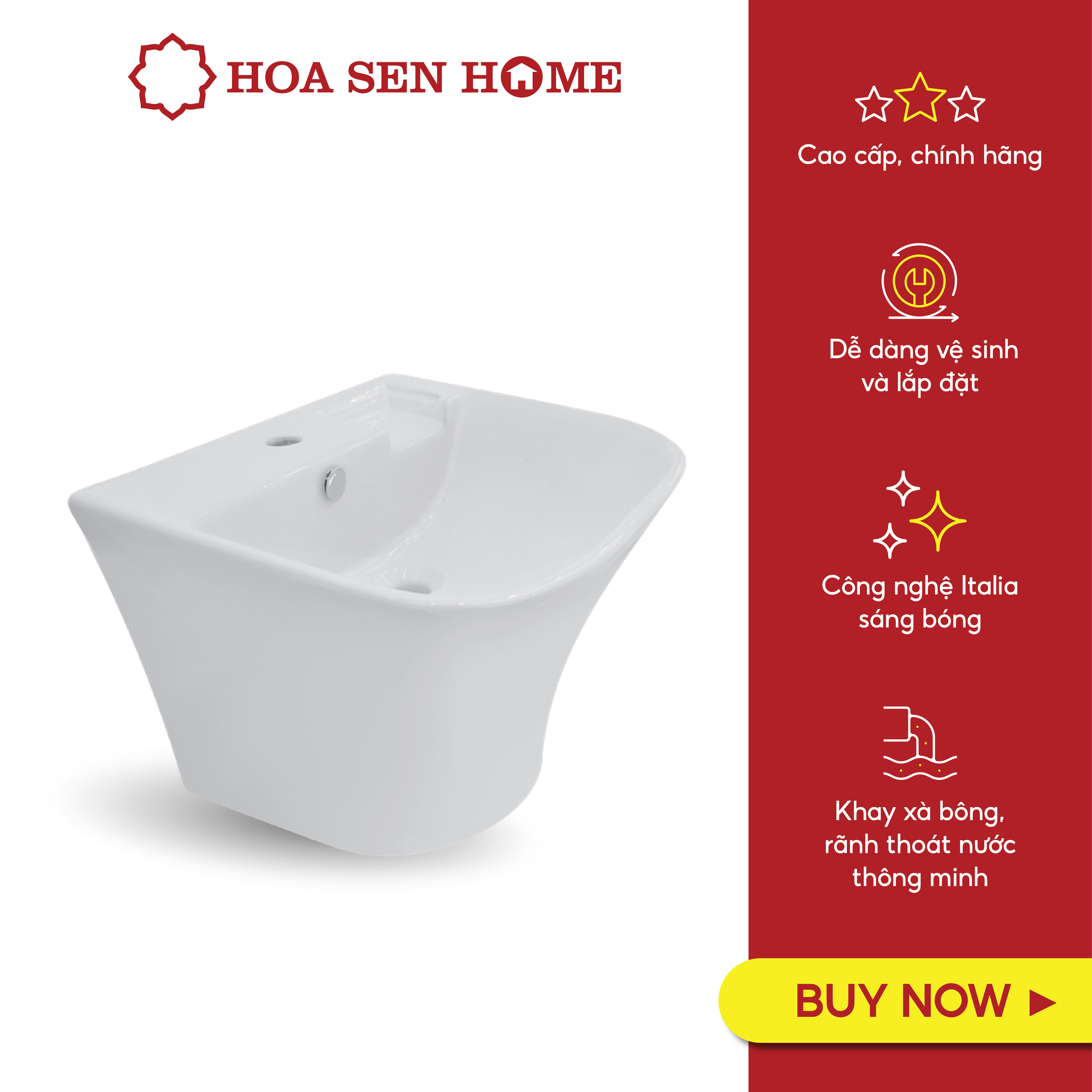 Bảo hành theo chính sách của Hoa Sen Home trong vòng 10 năm đối với phần sứ. Và 30 tháng kể từ ngày sản xuất đối với phụ kiện.