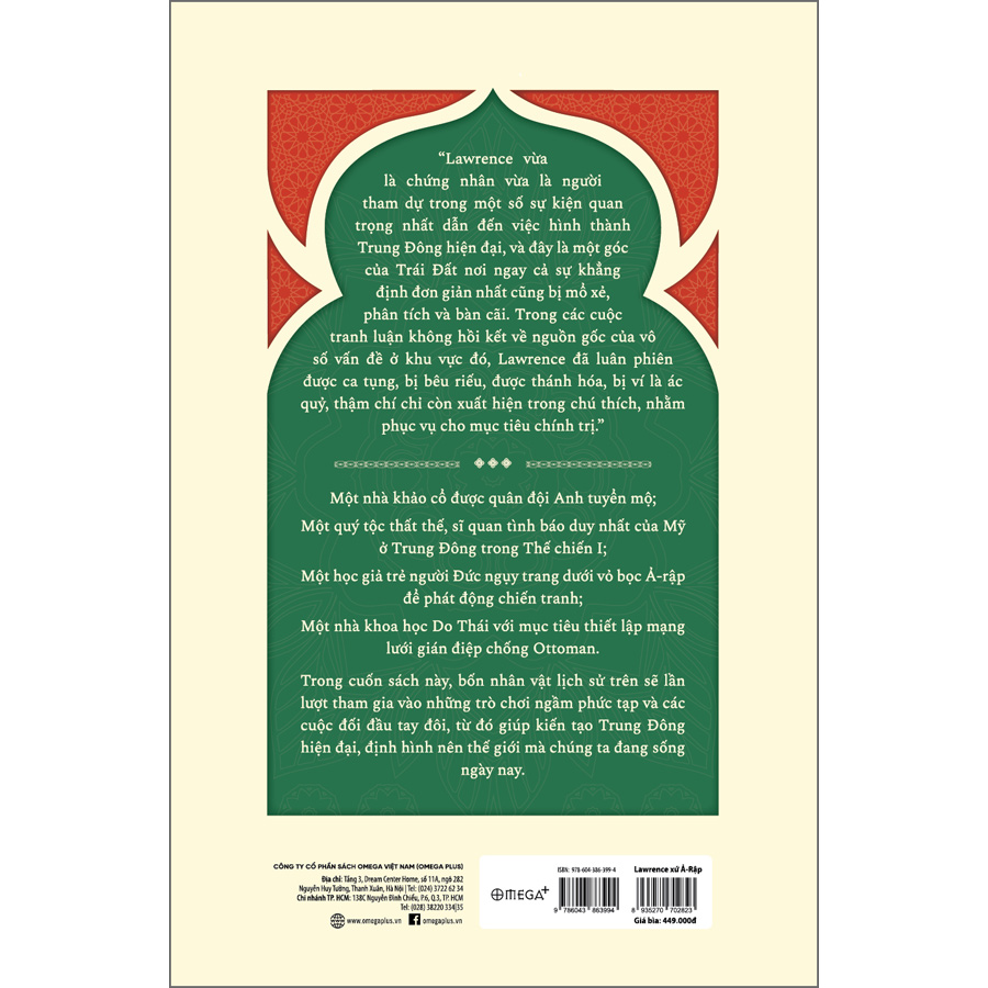 “Lawrence xứ Ả-Rập” là một trong những cuốn sách lịch sử khách quan, toàn diện, dễ đọc và có ảnh hưởng nhất về lịch sử Trung Đông; một tài liệu tham khảo thiết thực cho sinh viên, các nhà nghiên cứu và những độc giả quan tâm đến lịch sử Trung Đông nói riêng, lịch sử thế giới nói chung. Đây cũng là cuốn sách đầu tiên mở đầu cho Tủ sách Lịch sử Trung Đông của Omega Plus.