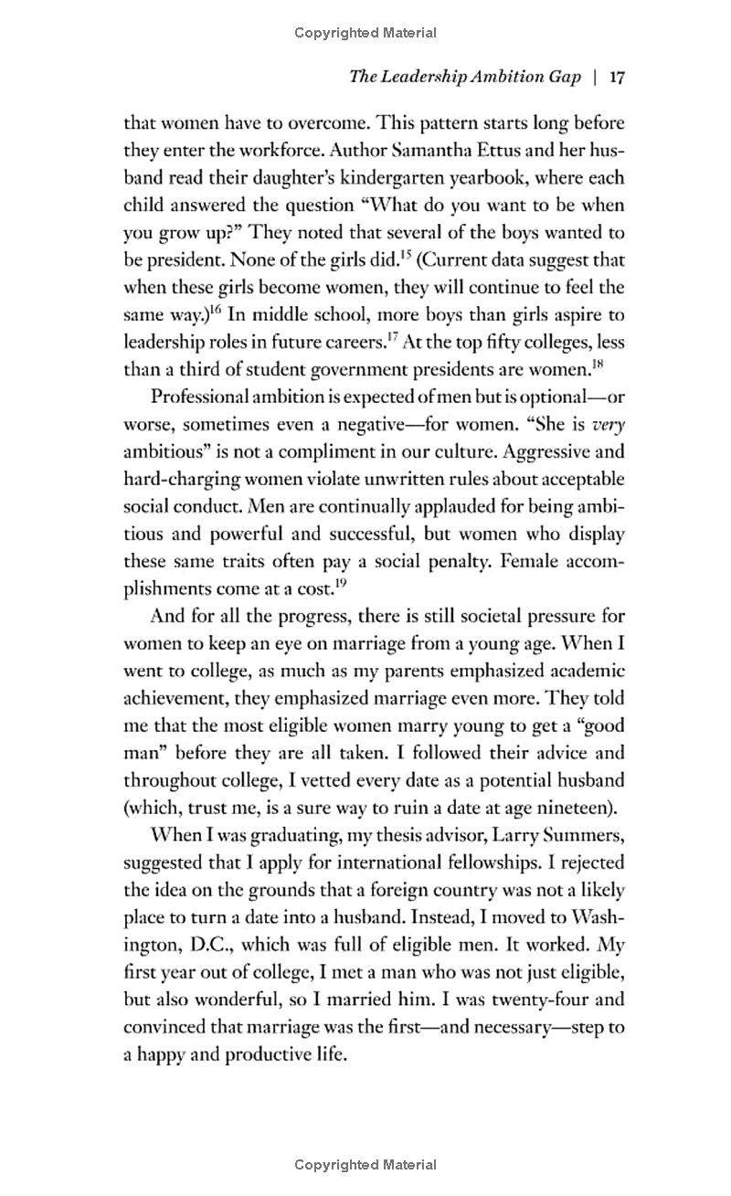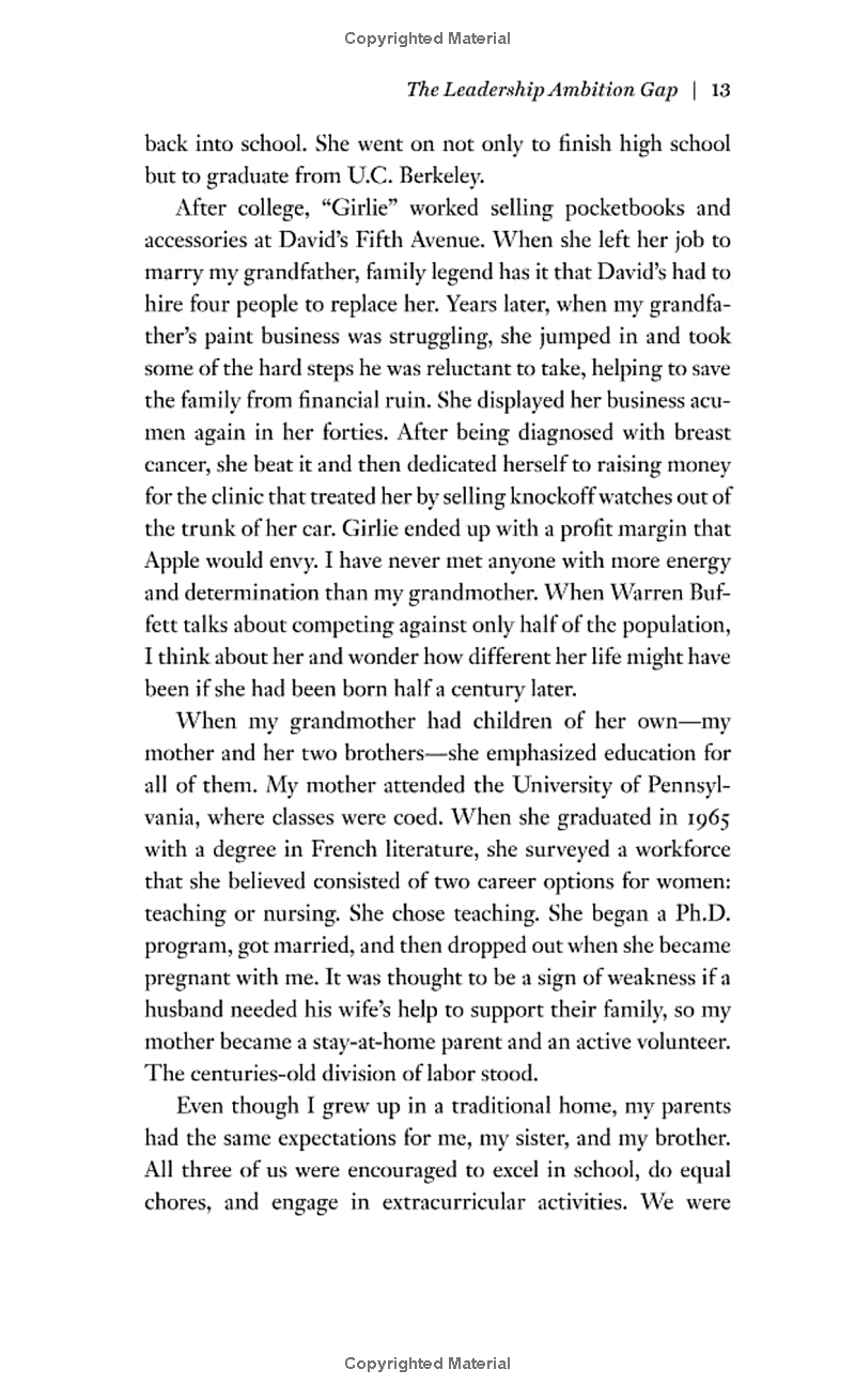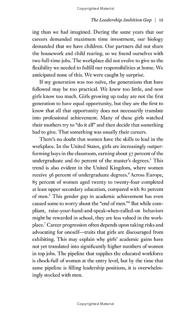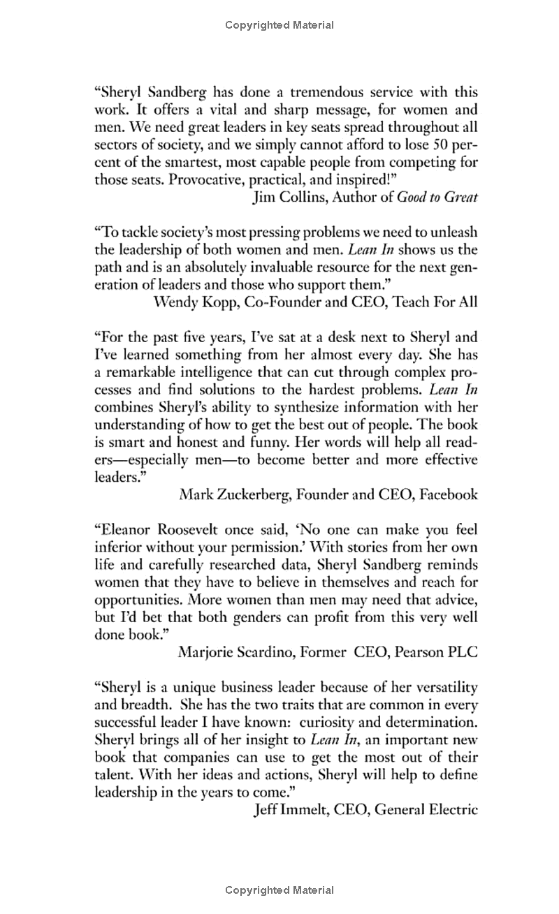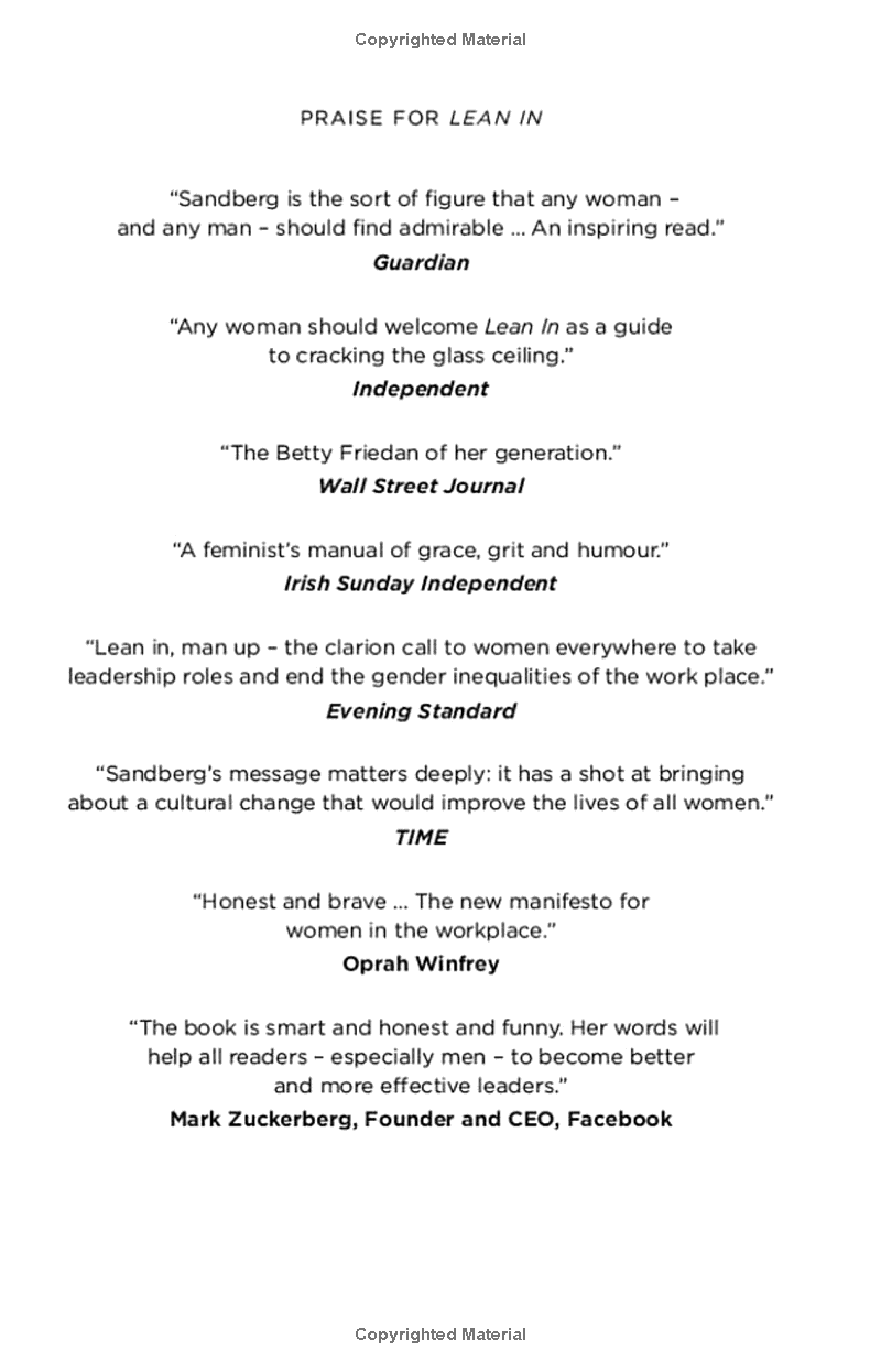 In Lean In, Sheryl Sandberg – Facebook COO and one of Fortune magazine's Most Powerful Women in Business – draws on her own experience of working in some of the world's most successful businesses and looks at what women can do to help themselves, and make the small changes in their life that can effect change on a more universal scale.