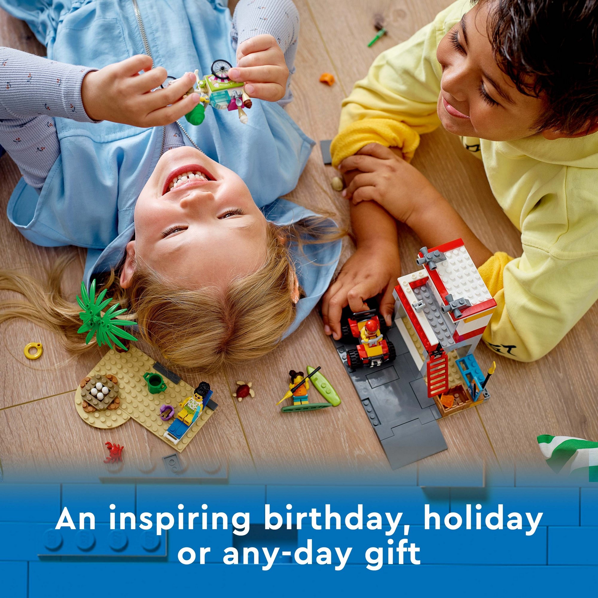 Những ngày tươi đẹp không bao giờ kết thúc với bộ mô hình LEGO City Trạm cứu hộ biển (60328) gồm một tòa nhà 2 tầng với phòng điều khiển và nhiều thiết bị cứu hộ, bao gồm cả xe địa hình phong cách. Các bé còn có thêm một xe đẩy bán kem đầy màu sắc và khung cảnh bãi biển với tấm mặt đường để kết nối với các bộ LEGO khác. Chỉ cần thêm mô hình thu nhỏ của chú rùa, cua và 4 nhân vật để có hàng giờ vui chơi thỏa sức tưởng tượng. Bộ mô hình LEGO này dành cho các bé từ 5 tuổi trở lên, có hướng dẫn lắp ráp dạng bản in và hướng dẫn kỹ thuật số có sẵn trong ứng dụng Hướng dẫn lắp ráp LEGO miễn phí. Hướng dẫn kỹ thuật số trực quan đi kèm với các công cụ thu phóng và xoay tuyệt vời cho phép trẻ hình dung mô hình từ mọi góc độ khi lắp ráp. Trẻ em học tập trong lúc vui chơi với các bộ mô hình LEGO City có các tòa nhà phong phú, phương tiện tuyệt vời và nhân vật vui nhộn. Trẻ em tìm hiểu về thế giới xung quanh thông qua các câu chuyện và kịch bản mô tả cuộc sống thực một cách vui nhộn và thú vị.