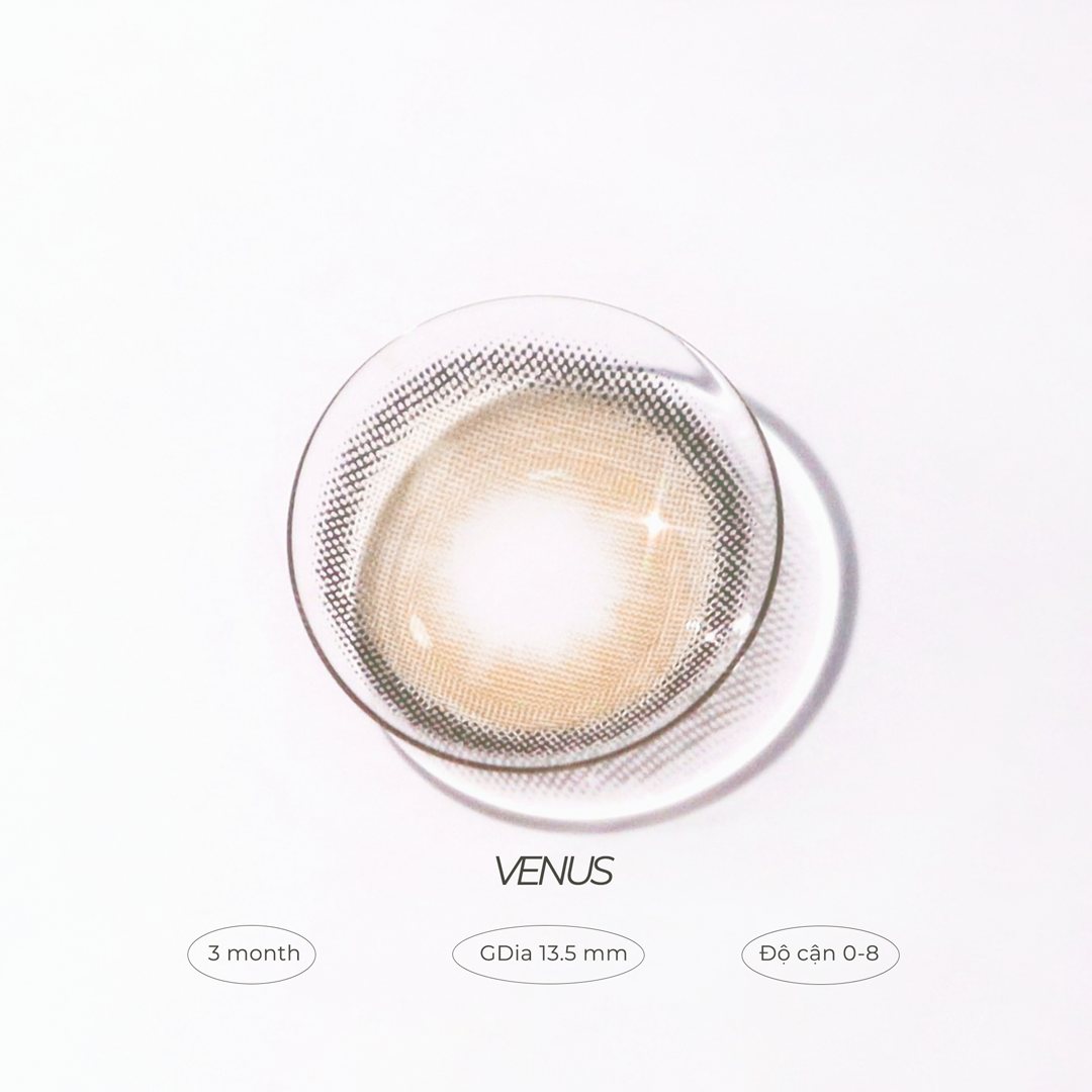 Venus brown siêu hot một thời nay đã được restock với giao diện mượt mà và sang chảnh hơn. Đây là mẫu lens nâu tây kết hợp hoàn hảo của tone màu nâu vàng với họa tiết vân lens trong veo nhẹ nhàng tinh tế.Venus Brown là sản phẩm mang thông điệp đến với người chủ sở hữu của mình rằng hãy luôn tự tin, quyến rũ và trendy! Với chất liệu Silicone Hydrogel và đường kính ( DIA) là 14.0mm cùng bán kính cong 8.6, Venus brown sẽ là lựa chọn rất phù hợp cho đôi mắt nhạy cảm của bạn.