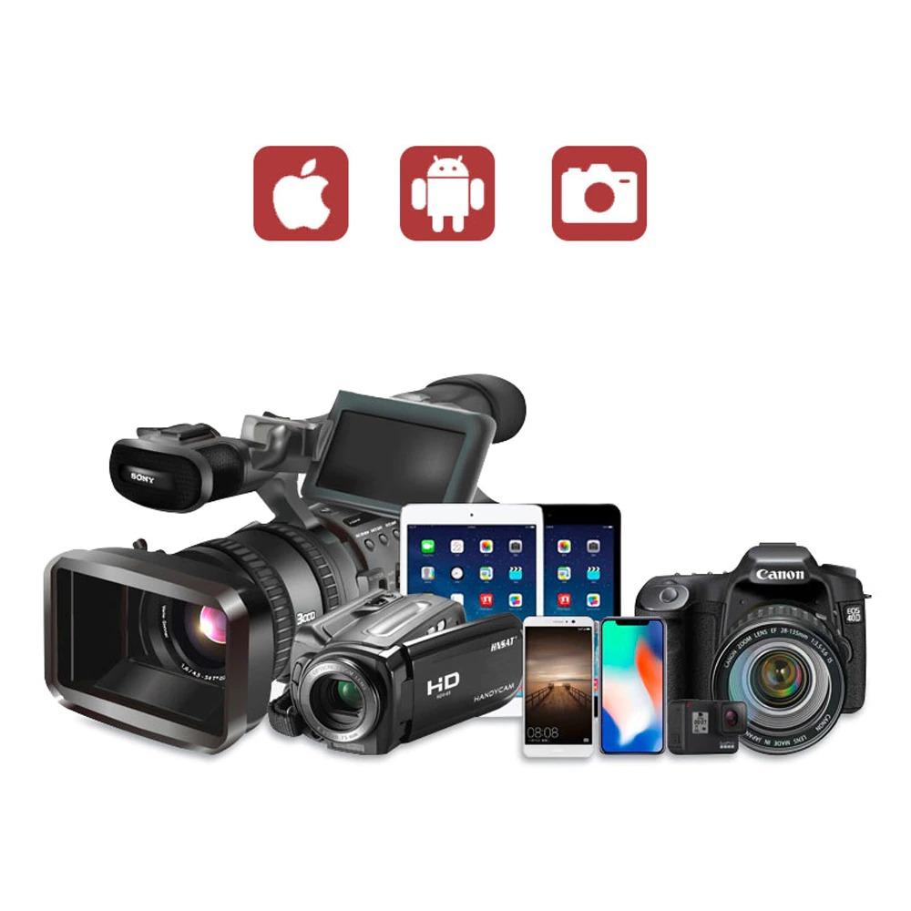 Tương thích với rất nhiều thiết bị: smartphone, máy ảnh, DSLR, máy quay, máy ghi âm, laptop.
