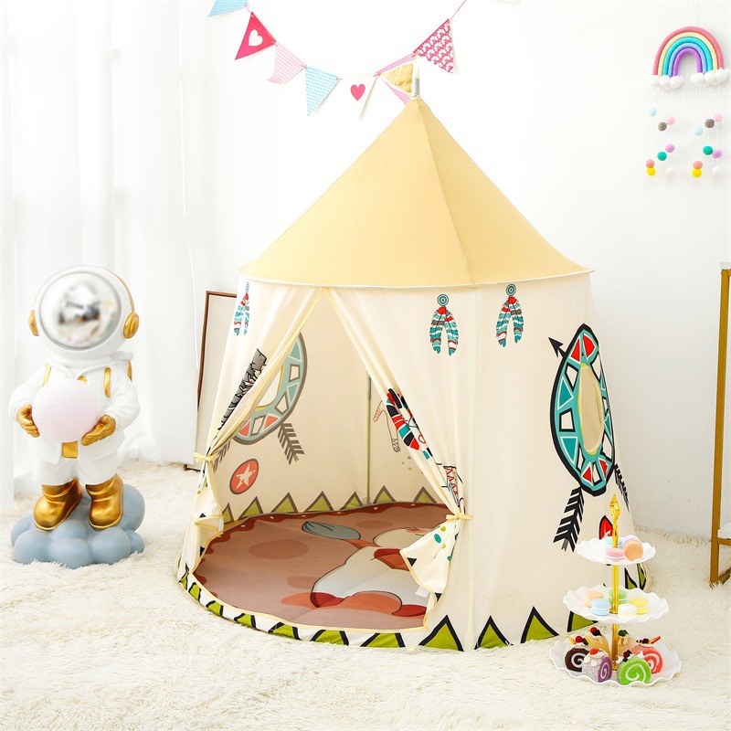 Lều vải cho bé gái màu hồng | Lều thổ dân cho bé | Lều vải Thiên Ý vải khaki dày | Teepee Tent