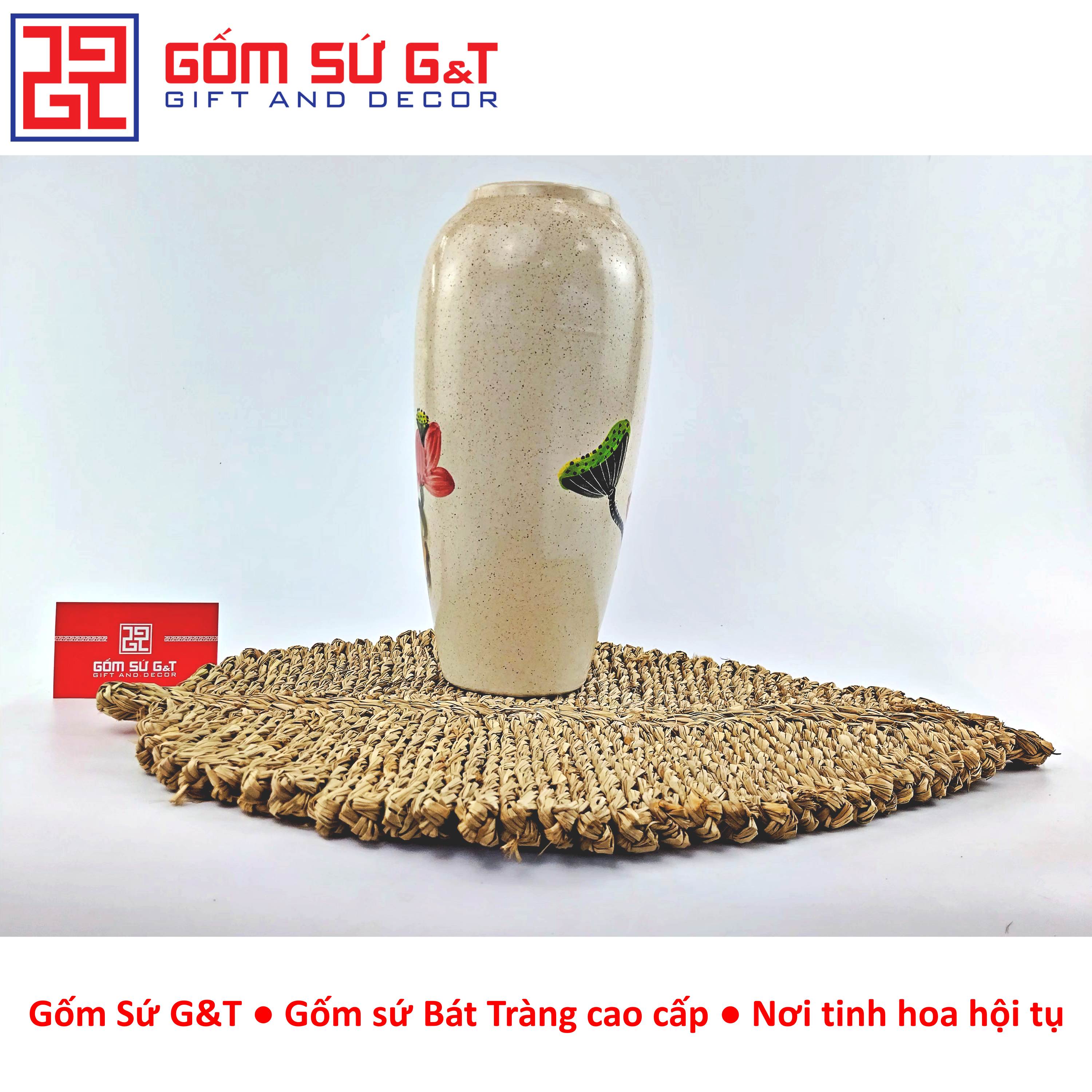 Gốm Sứ G&T tự hào là đơn vị cung cấp gốm sứ Bát Tràng chính hãng, cam kết chất lượng và giá trị nghệ thuật trong từng sản phẩm. Hãy lựa chọn lọc hoa dáng bom vẽ sen cầm để mang vẻ đẹp tinh hoa và phong thủy tích cực vào ngôi nhà bạn ngay hôm nay!