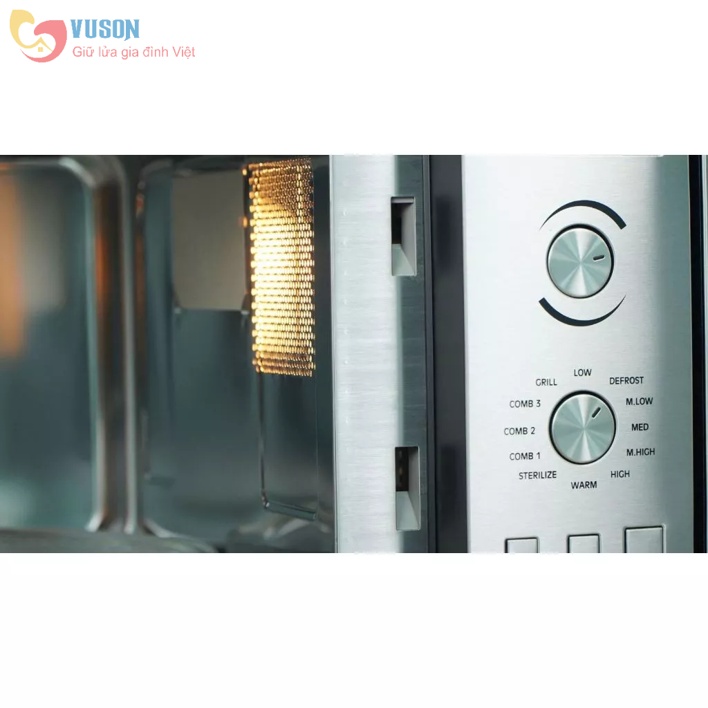 Mô tả sản phẩm • Lò vi sóng âm tủ kết hợp nướng thân inox • Dung tích 25L • Màn hình hiện thị LCD • Hệ thống điều khiển phím bấm điện tử •