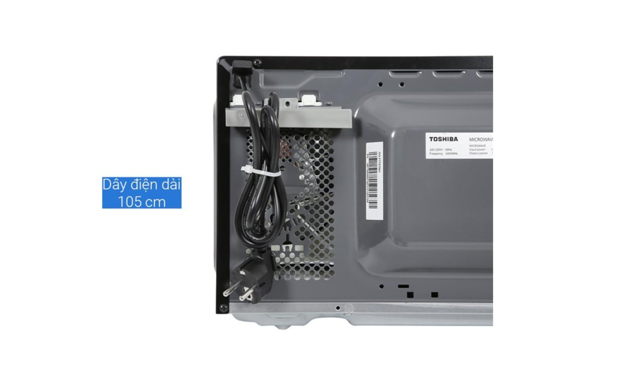 Kích thước khoang lò: Ngang 27.5 cm - Cao 17.4 cm - Sâu 29.5 cm THÔNG TIN SẢN PHẨM: Công suất - Dung tích - Chức năng chính - Mẫu lò vi sóng Toshiba này có công suất 700W hoạt động ổn định. - Dung tích 20 lít có thể bỏ vừa gà nguyên con khoảng 1 kg.