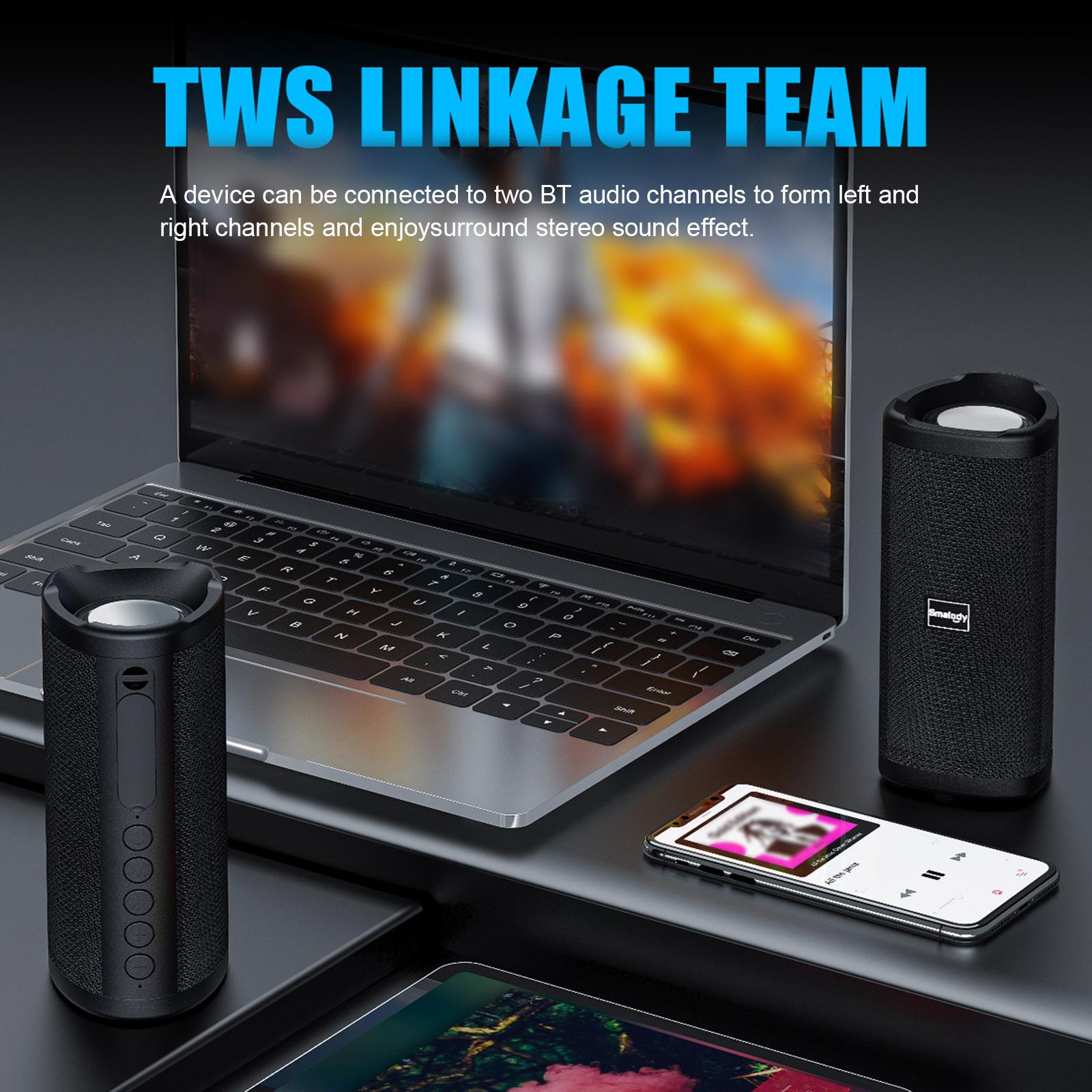Smalody SL-10 is a high-quality outdoor BT speaker, with cylinder-shaped appearance and powerful sound. It supports FM radio, TF card, U dirve and 3.5mm AUX IN music play; with microphone, you can enjoy hands-free calls.