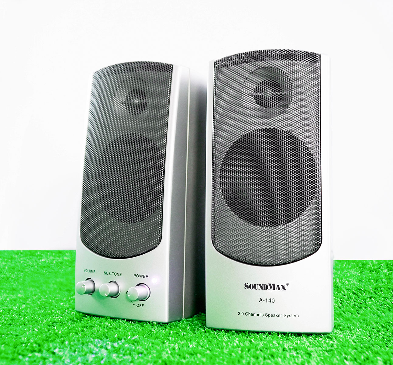 Loa SoundMax A140 2.0 thiết kế 2 loa rời hình hộp cách điệu nhỏ nhắn, màu bạc sang trọng. Mặt trước loa có 3 nút điều chỉnh rất thuận thiện cho các thao tác: Nguồn – SubTone (âm tần) – Volume (âm lượng). Loa SoundMax A140 2.0 rất thích hợp để cùng bạn bè tụ tập xem những bộ phim hay hoặc những bài nhạc mà bạn yêu thích.