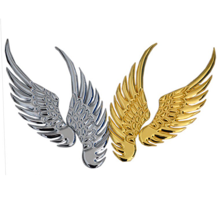 Tem Dán Trang Trí Xe Hơi Hình Đôi Cánh Thiên Thần 3D Ô Tô Decal Bằng Hợp Kim Kẽm Bạc Vàng