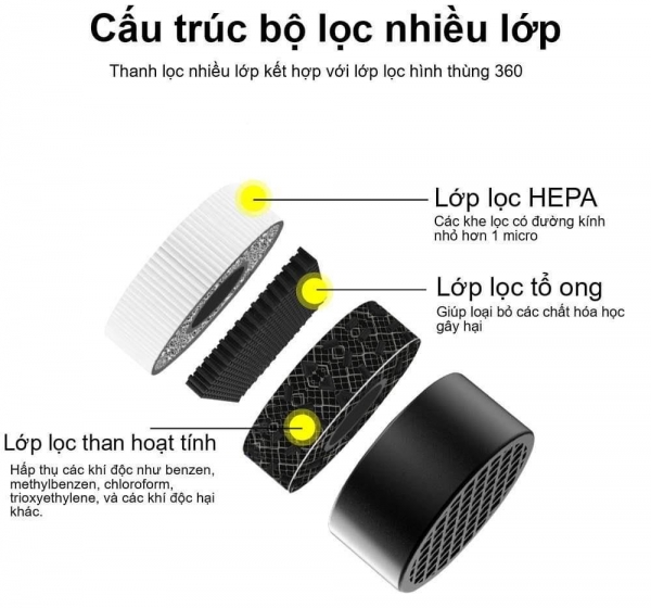 • Lớp lọc HEPA • Lớp lọc tổ ong • Lớp lọc than hoạt tính