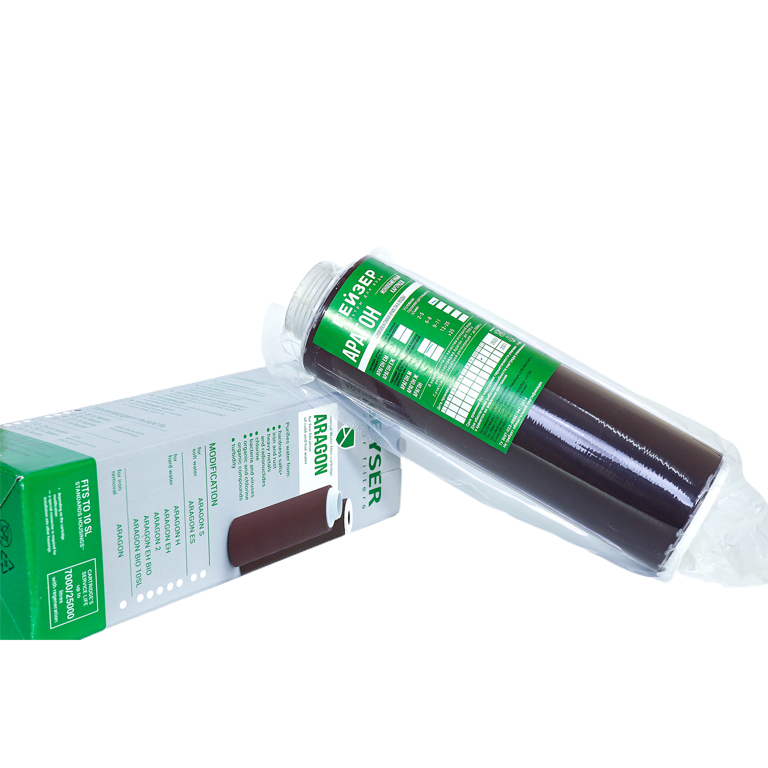 - Vật liệu lọc Aragon là loại polime duy nhất có tác động phức hợp tạo ra sự lọc vi cầu(kết cấu gồm các hạt dạng cầu cực nhỏ xếp sát nhau) nhờ kết cấu vô cùng phức tạp(cấu trúc đường rối cực dài và phức tạp) kết hợp với cơ chế hấp thụ và trao đổi ion của nó. Vật liệu Aragon được làm bằng hợp chất cao phân tử, là các chuỗi polime dài, tạo thành mặt tiết diện tiếp xúc với nước lên đến 500m2/gam. Làm tăng hiệu quả hấp thụ và trao đổi ion gấp 10 – 20 lần so với lõi lọc thông thường. Khả năng hấp thụ của Aragon tương đương với khả năng hấp thụ của loại than hoạt tính tốt nhất hiện tại đang sử dụng.