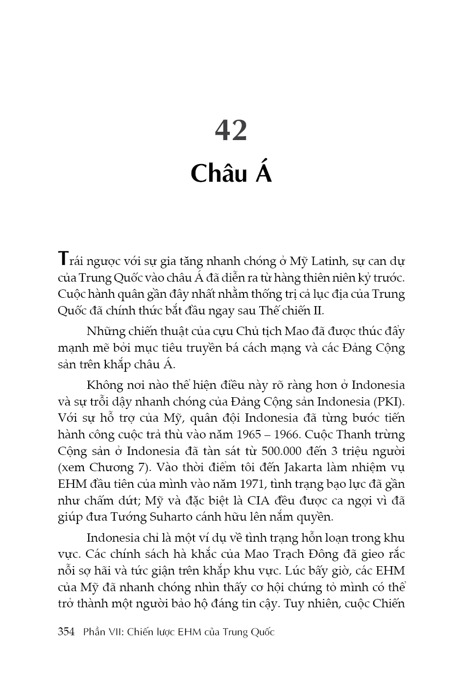 Cùng với sự thay đổi nhận thức này, tác giả John Perkins cũng làm rõ sự khác nhau của bốn trụ cột trong chiến lược EHM (nợ nần, nỗi sợ hãi, lo lắng về sự thiếu thốn và chia để trị) của Mỹ và Trung Quốc. Sức hấp dẫn của Con đường Tơ lụa mới - với khả năng kết nối một mạng lưới đối tác thương mại toàn cầu rộng lớn - đã khiến các quốc gia mù quáng trước thực tế rằng những mối liên kết như vậy có thể được sử dụng để chống lại chính họ. Lời kêu gọi chấm dứt tình trạng nghèo đói thông qua cơ sở hạ tầng được tài trợ bằng nợ đã thao túng chính trị trong bí mật và tham nhũng của Trung Quốc.
