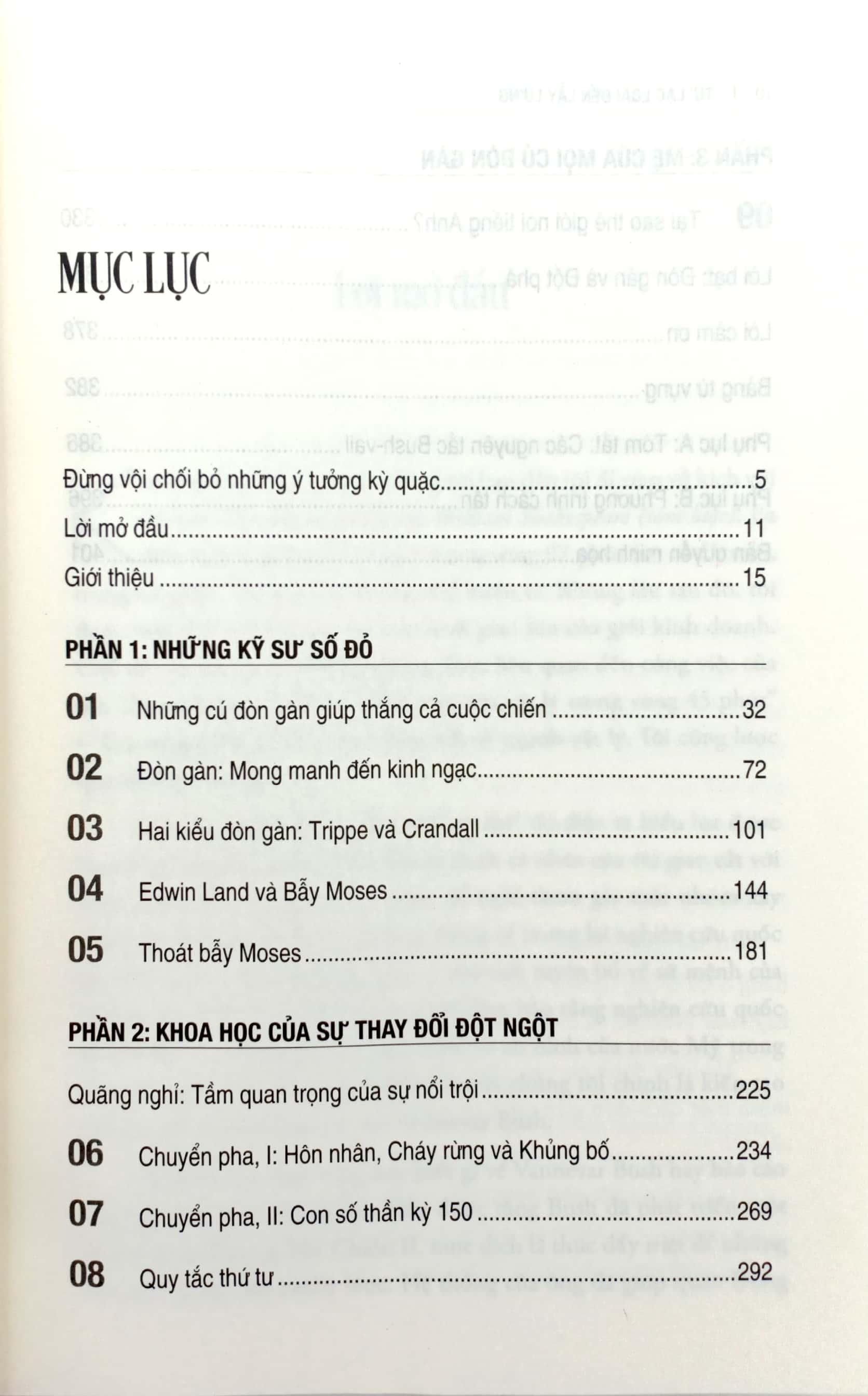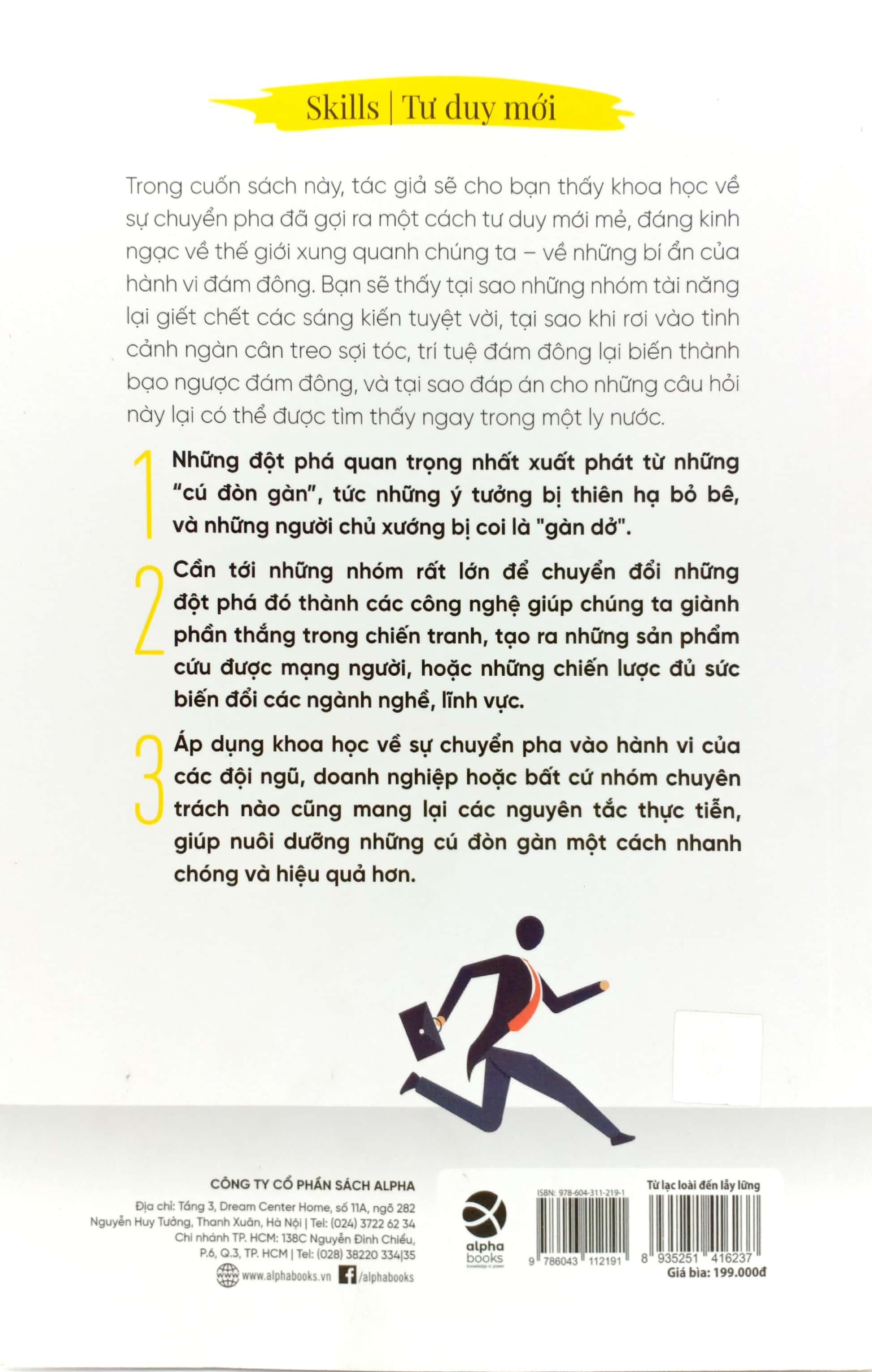 Trong cuốn sách này, tác giả sẽ cho bạn thấy khoa học về sự chuyển pha đã gợi ra một cách tư duy mới mẻ, đáng kinh ngạc về thế giới xung quanh chúng ta- Về những bí ẩn của hành vi đám đông. Bạn sẽ thấy tại sao những nhóm tài năng lại giết chết các sang kiến tuyệt vời, tại sao khi rơi vào tình cảnh ngàn cân treo sợi tóc, trí tuệ đám đông lại biến thành bạo ngược đám đông, và tại sao đáp án cho những câu hỏi này lại có thể được tìm thấy trong một ly nước.