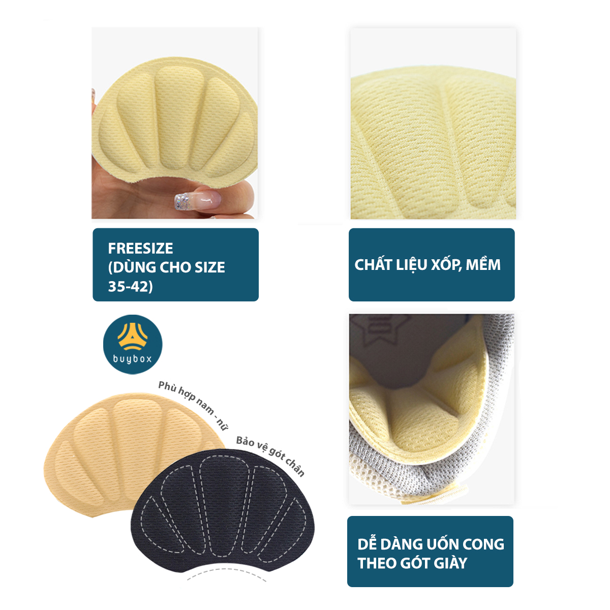 + CÔNG DỤNG - Giúp chống tuột gót, chống trầy gót sau và giảm size giày . - Sản phẩm thiết kế 4D nên ôm trọn phần lõm sau mắt cá chân - Chất liệu