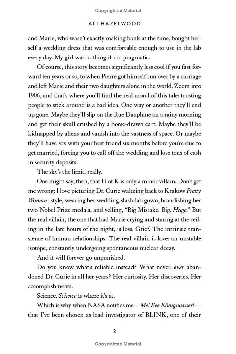 Sure, Levi is attractive in a tall, dark, and piercing-eyes kind of way. And sure, he caught her in his powerfully corded arms like a romance novel hero when she accidentally damseled in distress on her first day in the lab. But Levi made his feelings toward Bee very clear in grad school—archenemies work best employed in their own galaxies far, far away.