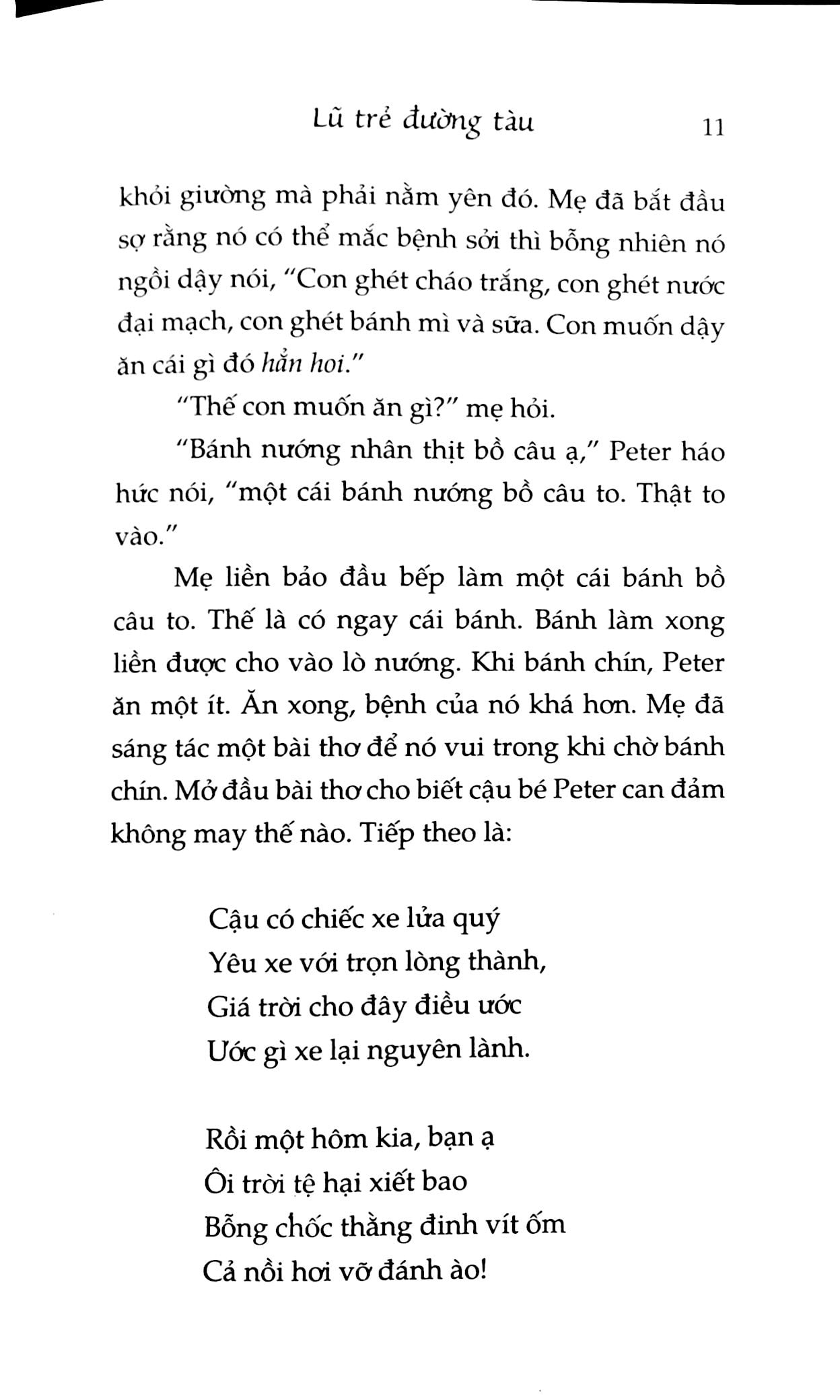 “Em bảo này,” Phyllis gợi ý, “lát nữa Rồng xanh đi qua chúng mình cũng vẫy chào nhé. Nếu nó là rồng thần, nó sẽ hiểu và mang tình yêu của chúng mình tới cha. Còn nếu không, ba cái vẫy tay thì có mất gì đâu. Đừng bỏ lỡ dịp này.”