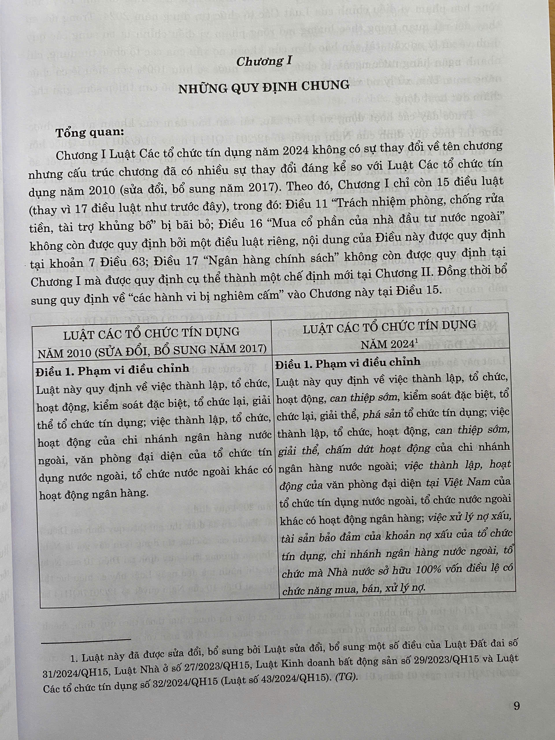 Nhằm cung cấp cho bạn đọc toàn bộ nội dung Luật Các tổ chức tín dụng năm 2024 và phần so sánh, bình luận, đánh giá tác động của Luật đến các đối tượng điều chỉnh so với quy định của Luật Các tổ chức tín dụng năm 2010 (sửa đổi, bổ sung năm 2017), đồng thời, phân tích một số nội dung của các Thông tư quy định chi tiết các vấn đề có liên quan đến việc áp dụng Luật Các tổ chức tín dụng năm 2024, Nhà xuất bản Chính trị quốc gia Sự thật xuất bản cuốn sách Luật Các tổ chức tín dụng năm 2024 - So sánh và bình luận do Luật sư Quách Minh Trí làm chủ biên. Cuốn sách giúp các tổ chức tín dụng, chi nhánh ngân hàng nước ngoài, tổ chức mua bán, xử lý nợ,... và người dân nhận diện nhanh, chính xác những nội dung mới, nội dung được sửa đổi, bổ sung của Luật, góp phần triển khai thi hành Luật được hiệu quả.