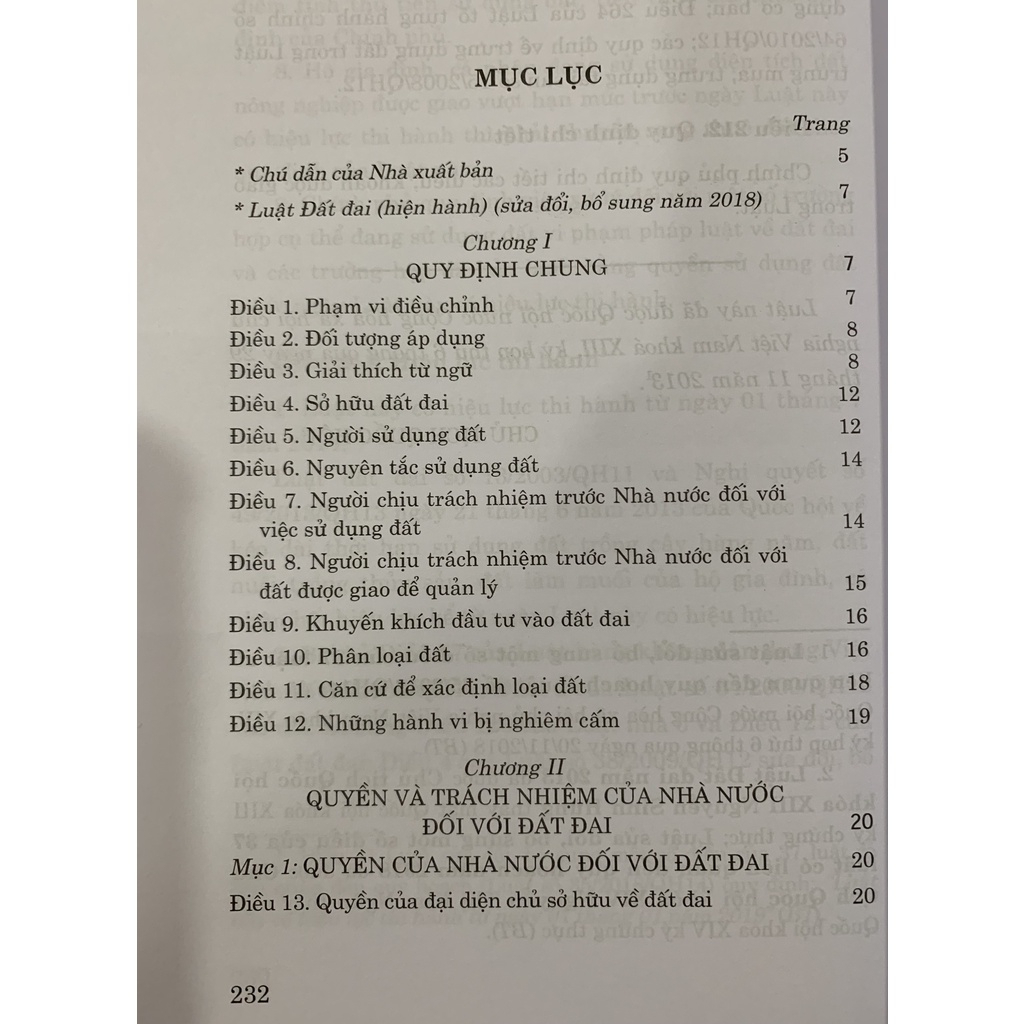 Sách - Luật Đất đai (hiện hành) (Sửa đổi, bổ sung năm 2018)
