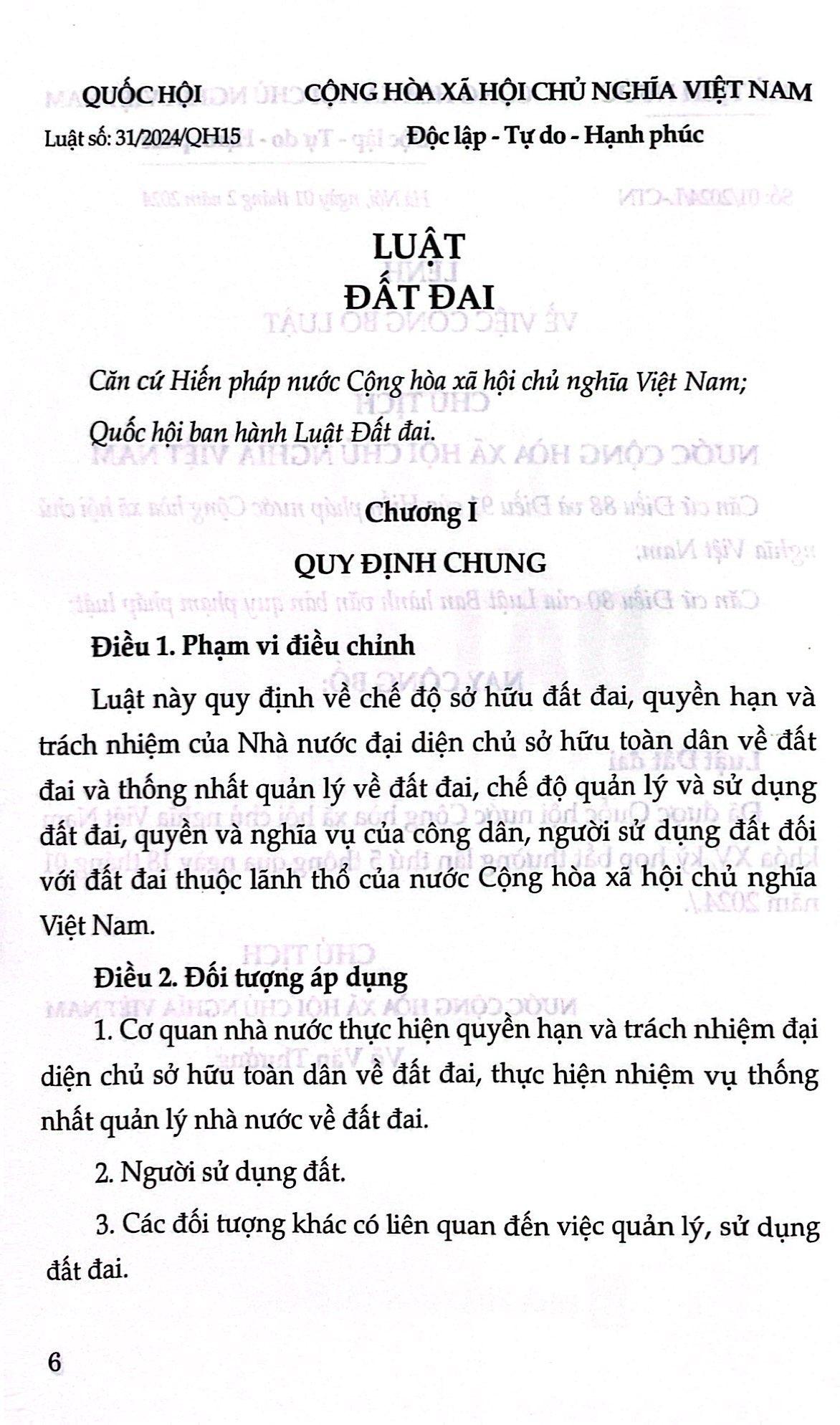 Luật đất đai số 31/2024/QH15 ngày 18 tháng 1 năm 2024 hiệu lực thi hành.
