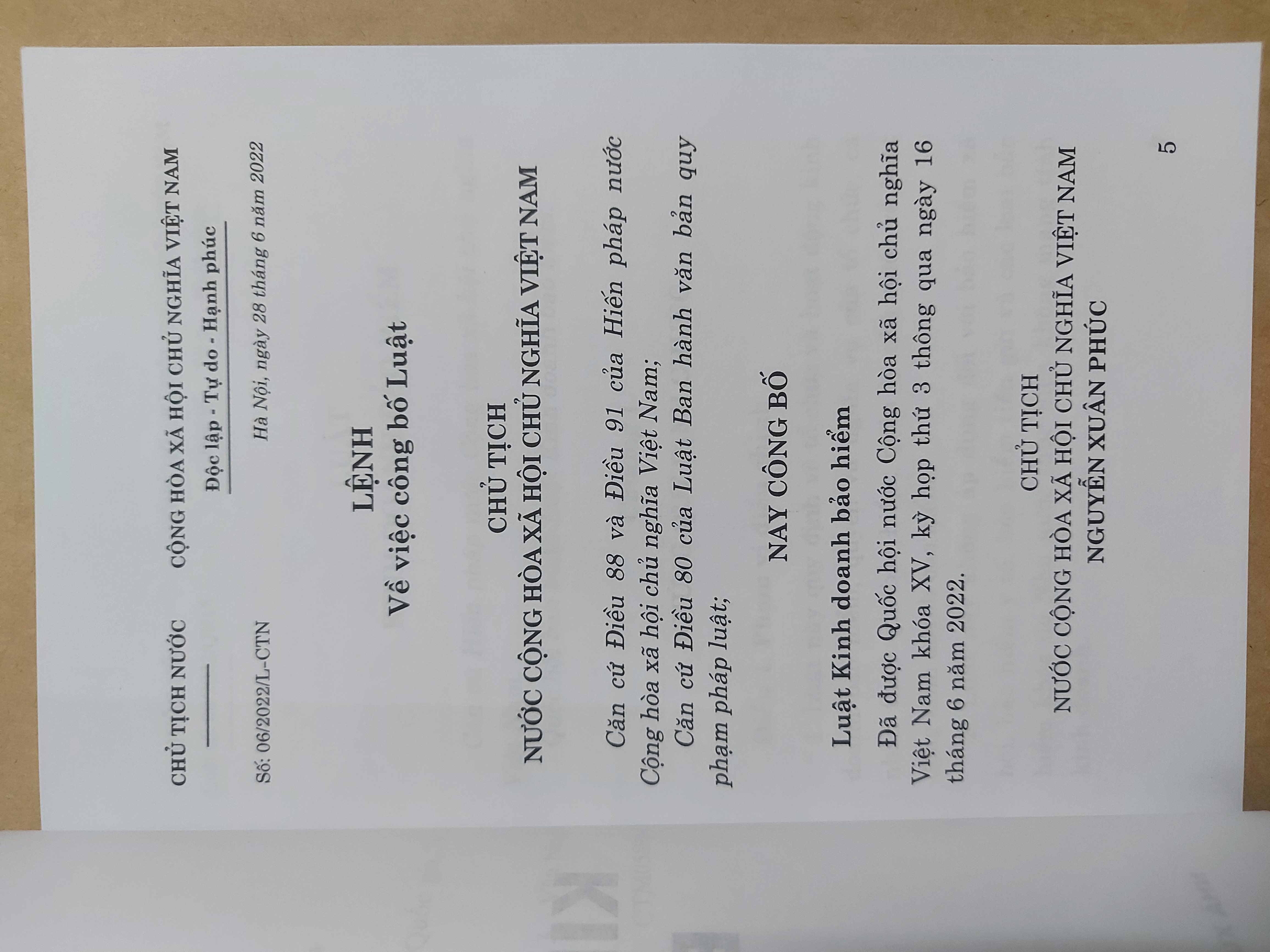 Luật Kinh Doanh Bảo Hiểm số 08/2022/Qh15 đã được Quốc Hội thông qua ngày 16 tháng 6 năm 2022 ( Luật này có hiệu lực từ ngày 01 -01 -2023)